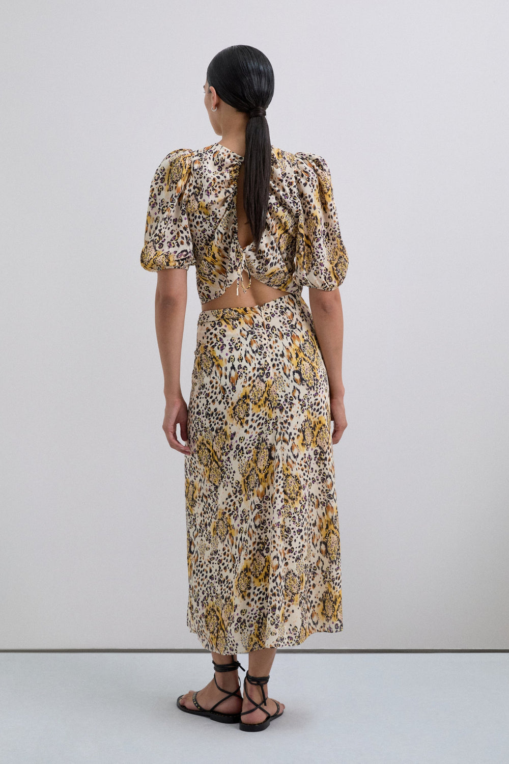 Falda midi estampada animal print. Corte regular fit. Cintura elástica.