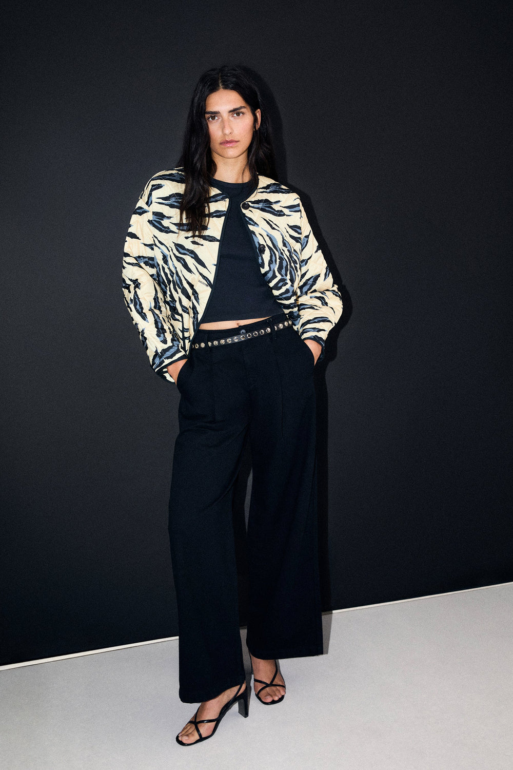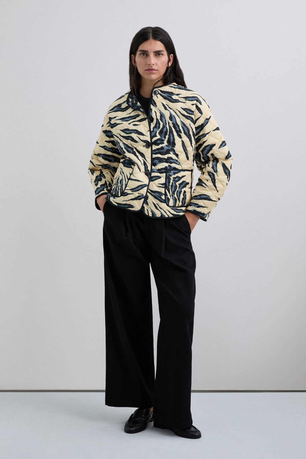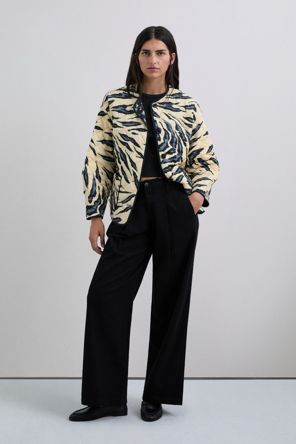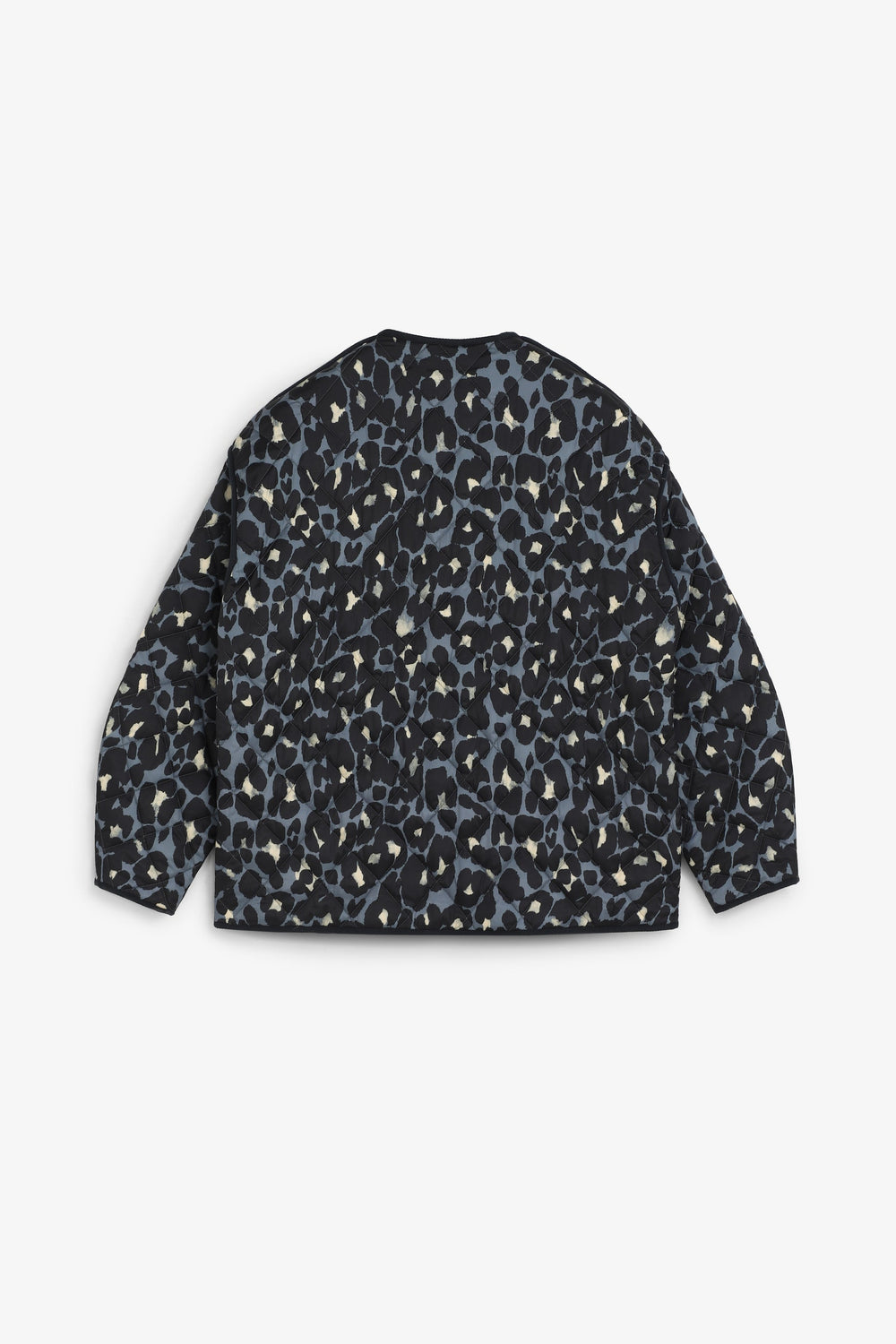 Reversible puffer jacket. Animal print. Long sleeves. Two front pockets. Button fastening.