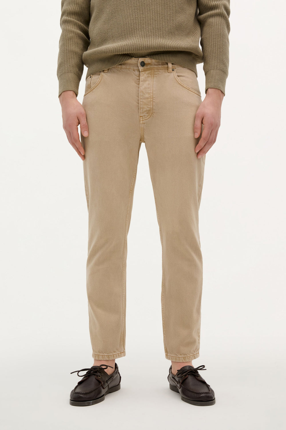 Jeans made of a cotton blend. Cropped fit, top button and zip fly fastening and side and back pockets. Belt loops at the waist.