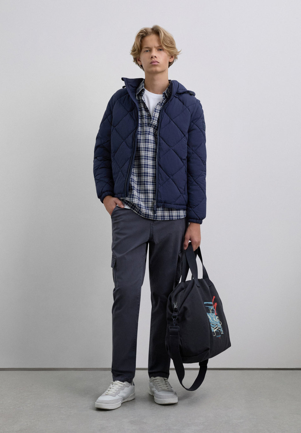 Cargo trousers made of slightly stretch BCI cotton. Regular fit, top button and zip fastening and side pockets. Belt loops at the waist and flap pockets on the leg.