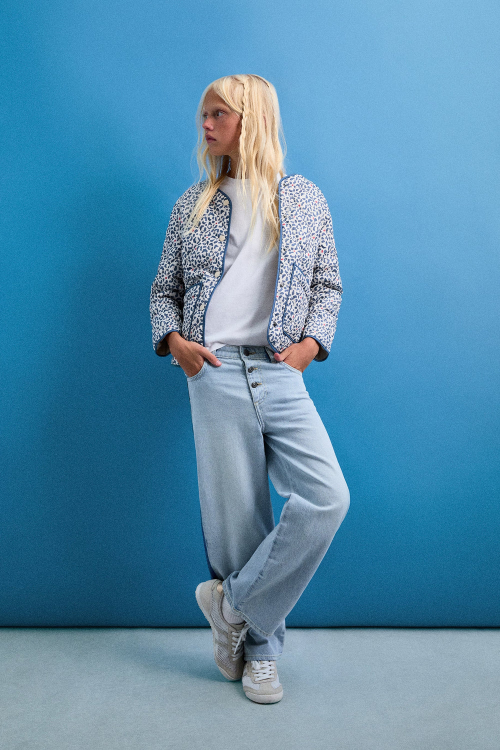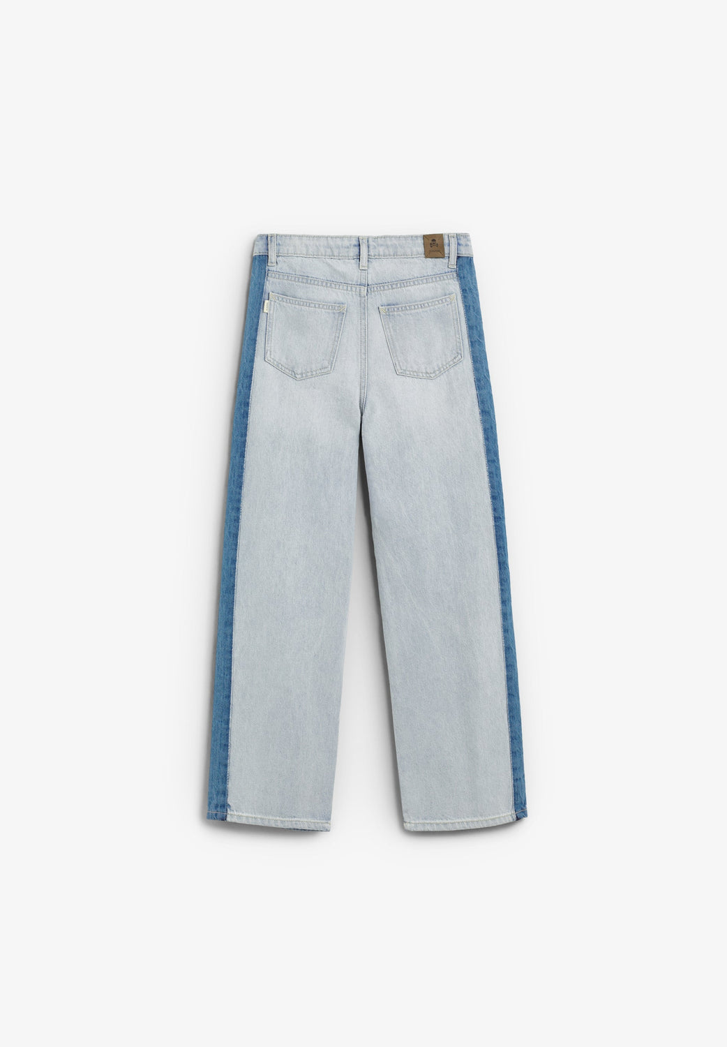 Wide led jeans made of 100% BCI cotton. Two button and zip fastening. Belt loops at the waist. Contrast seam detail on the side. 100% cotton lining.