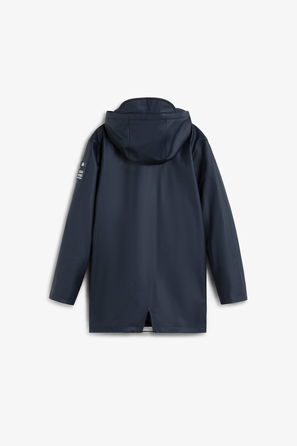 Waterproof parka with adjustable hood. Side pockets with placket and snap button. Synthetic lining. Rubber logo patch detail and skull. Button fastening. Long sleeves.