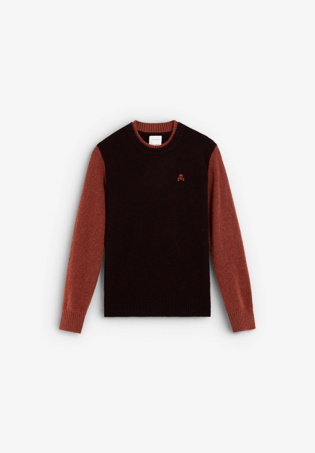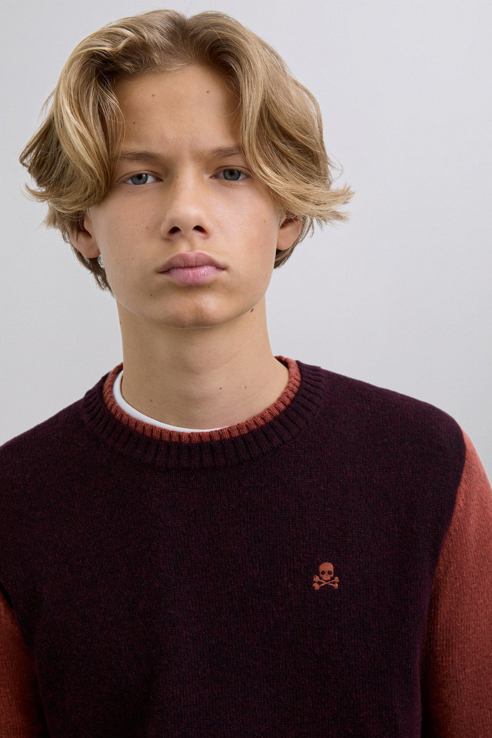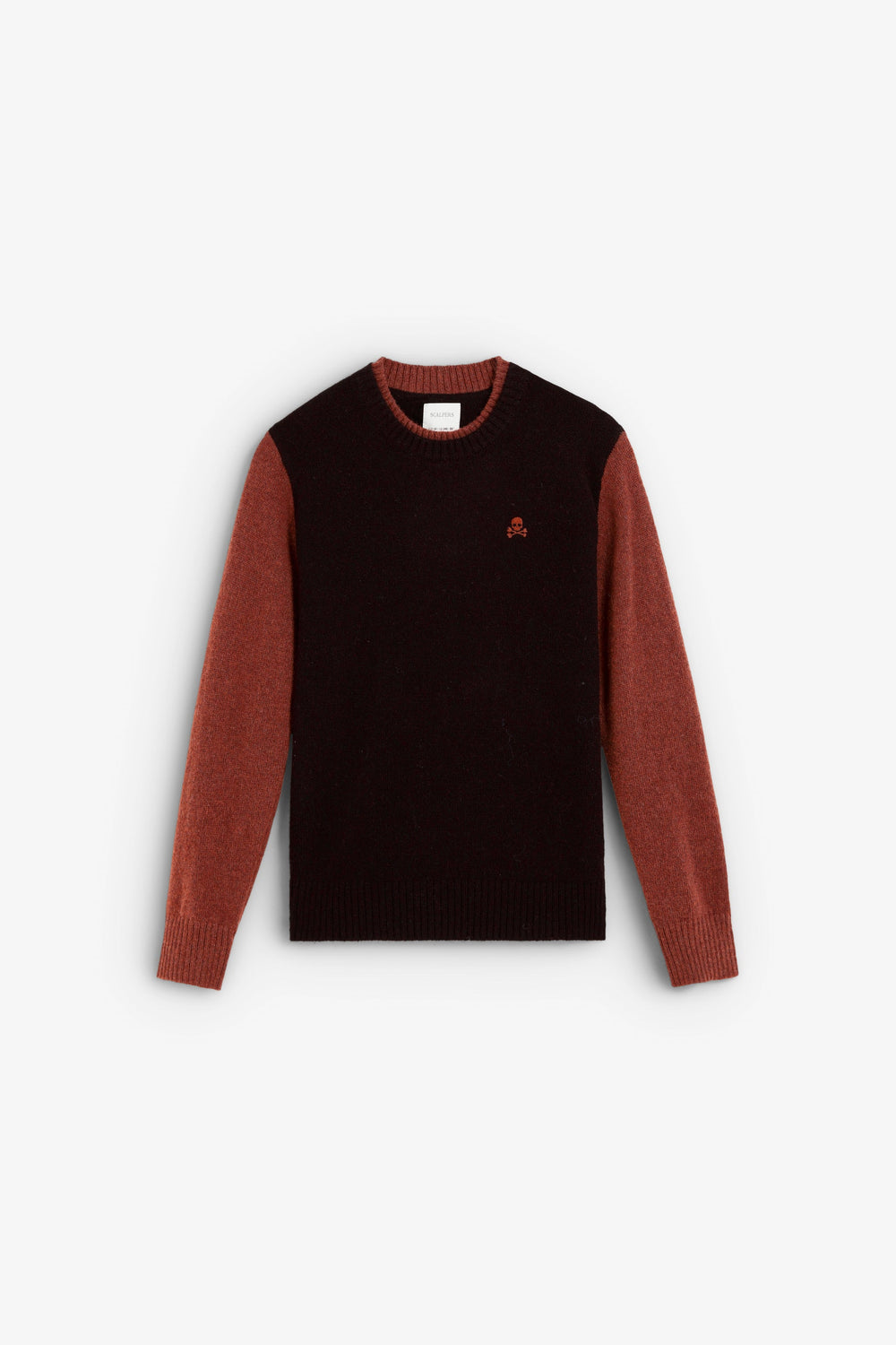 Knit sweater made of a wool blend. Round neck and contrasting long sleeves. Contrast embroidered logo detail on the chest.