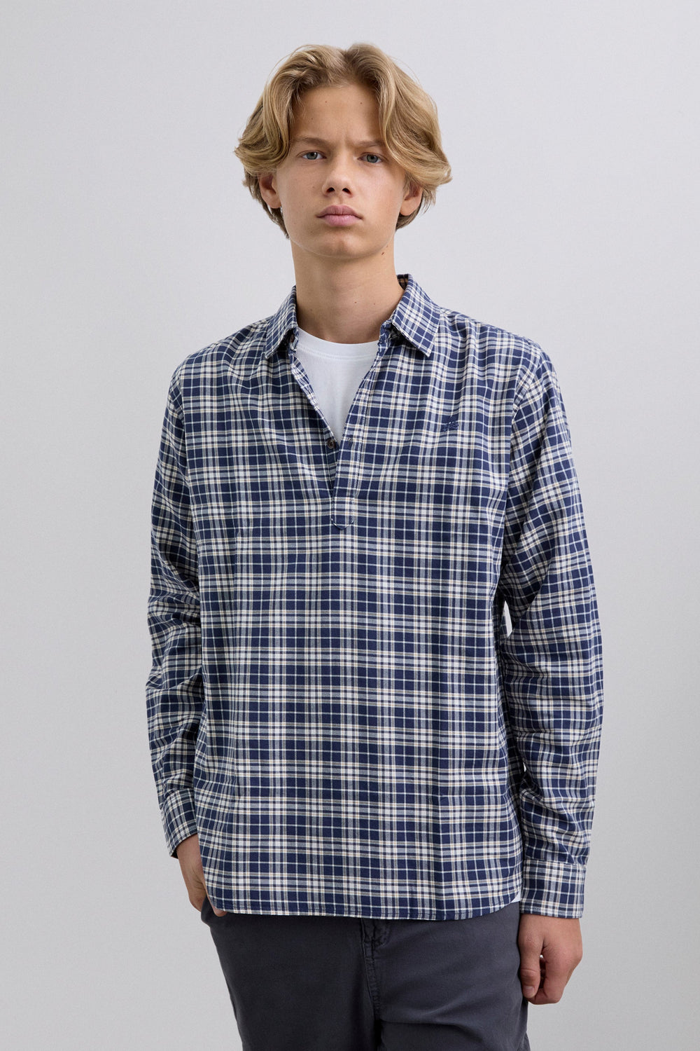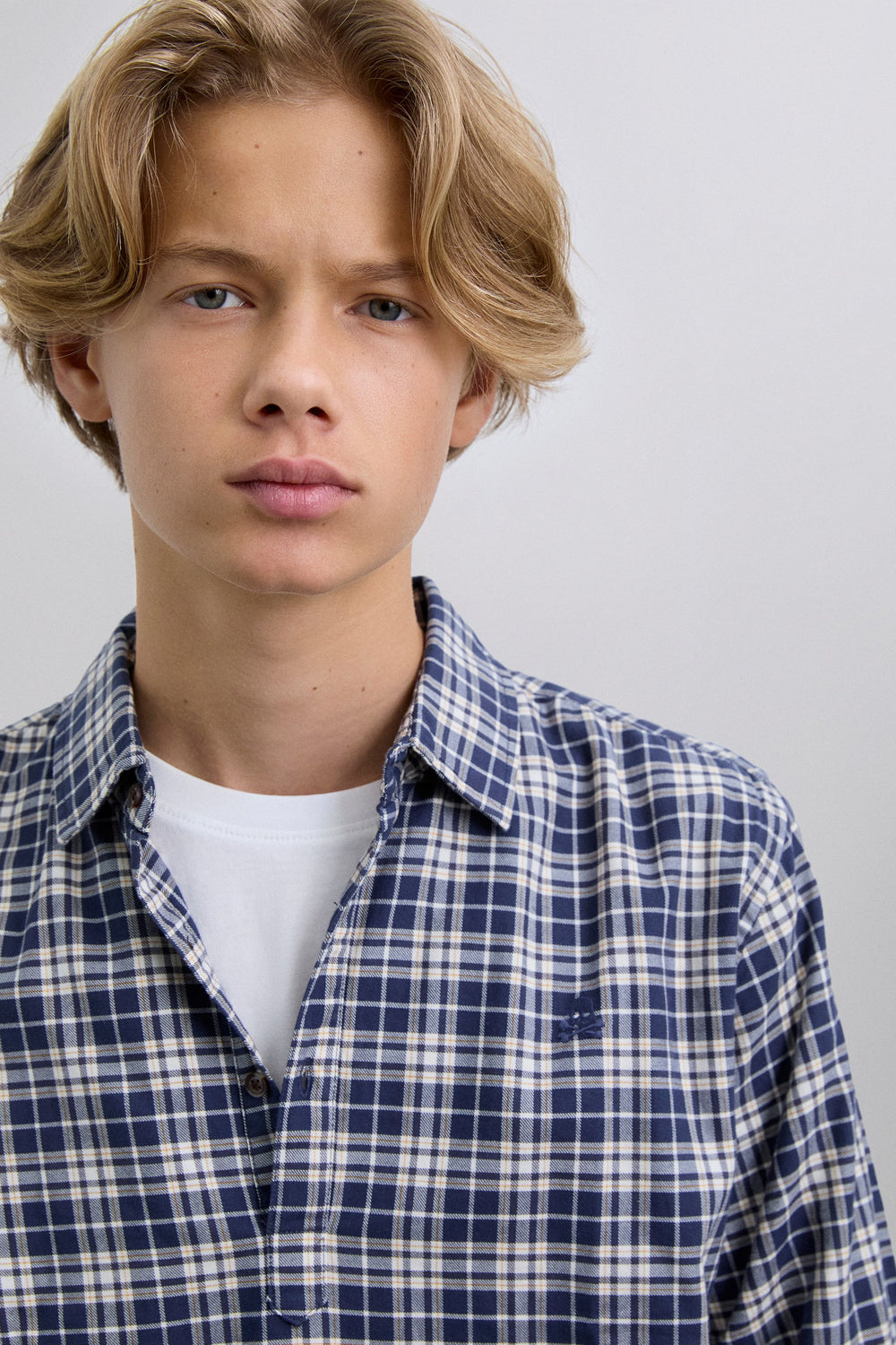 Fleece shirt made of 100% BCI cotton. Check print. Front button fastening. Long sleeves. Adjustable buttoned cuffs. Matching embroidered skull detail on the chest.