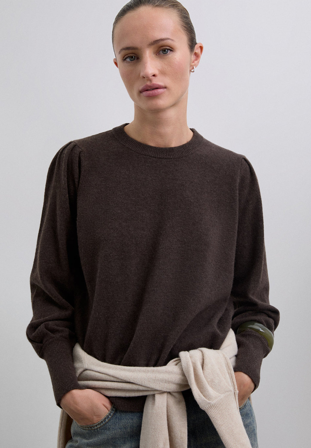 Sweater made of a wool blend. Regular fit. Round neck. Long slightly puffed sleeves with ribbed cuffs.