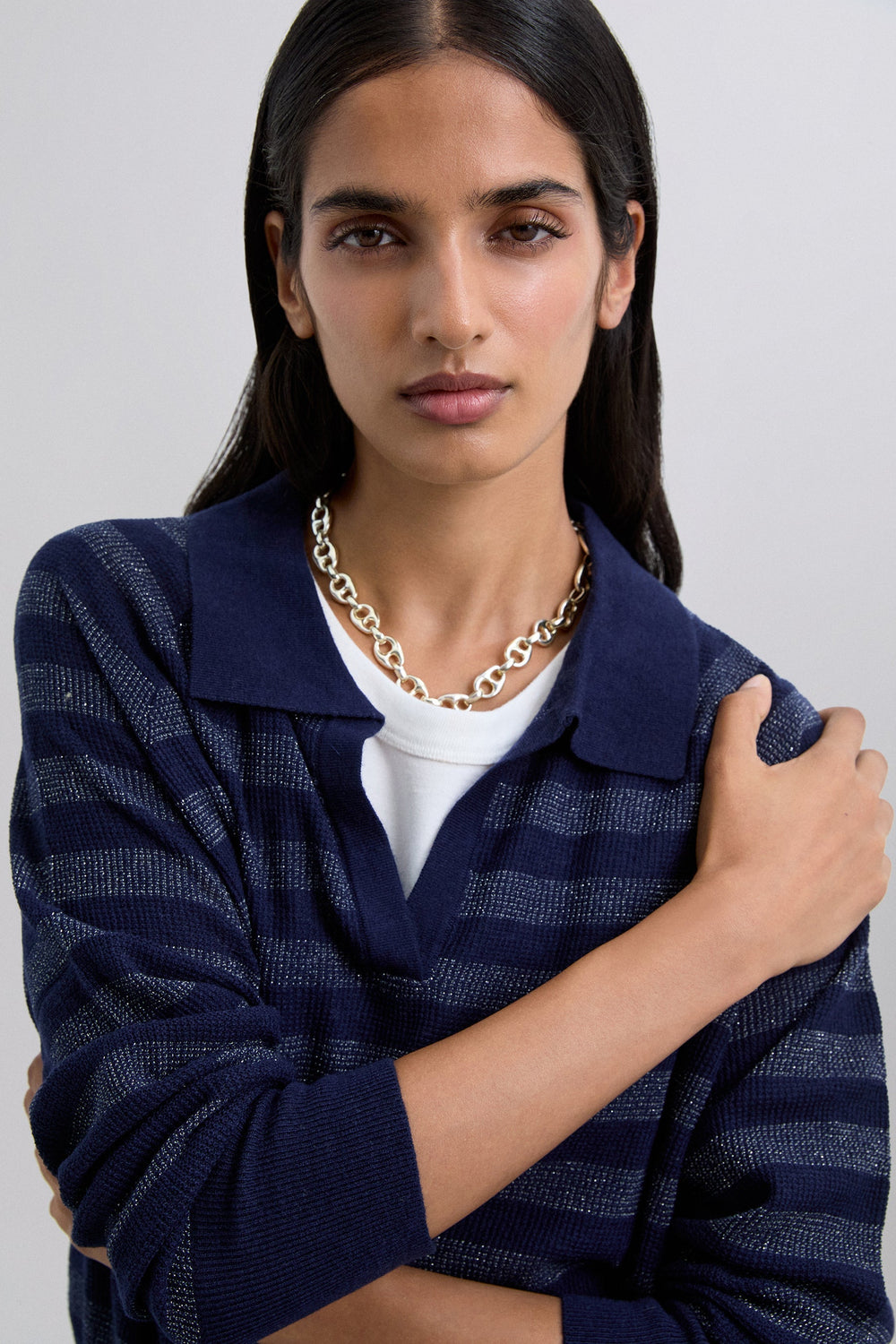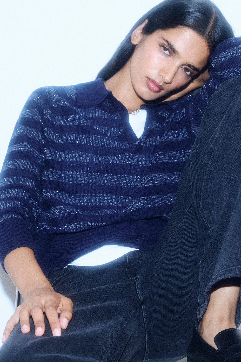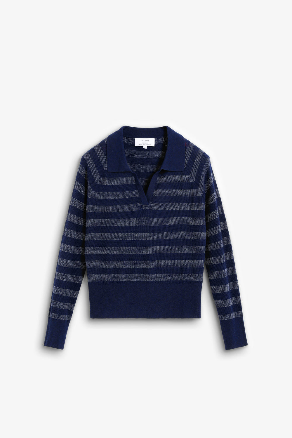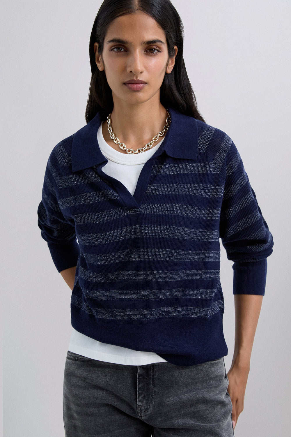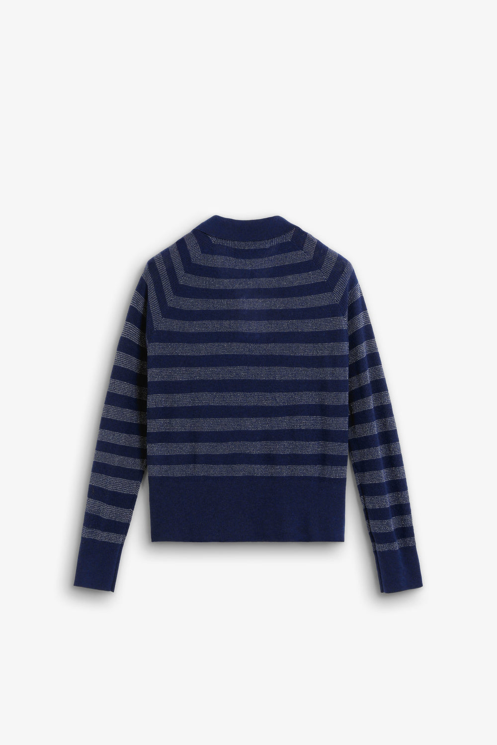 METALLIC STRIPE POLO SWEATER