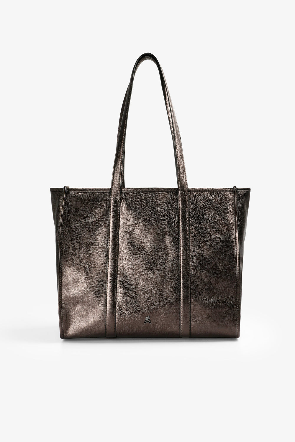 Tote bag made from 100% leather. Double straps and zip fastening. Metal logo detail on the front.