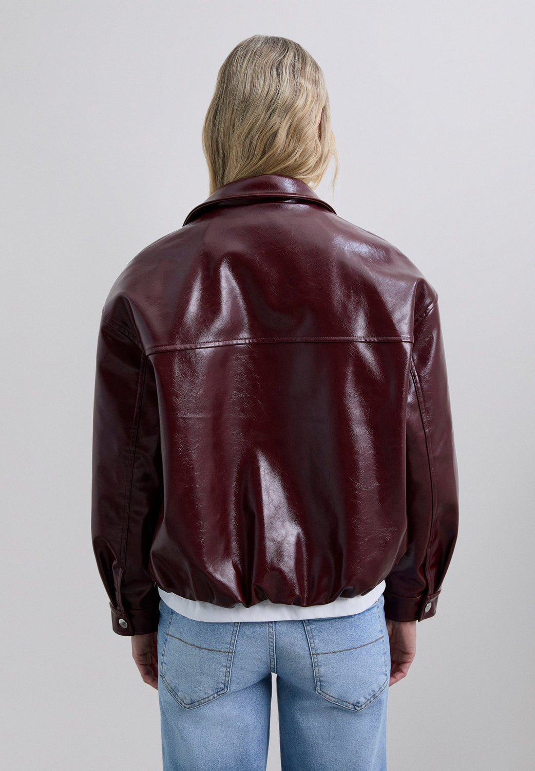 Bomber jacket with shirt collar design. Front button fastening. Front pockets with flap and button. Cuffs with button fastening.