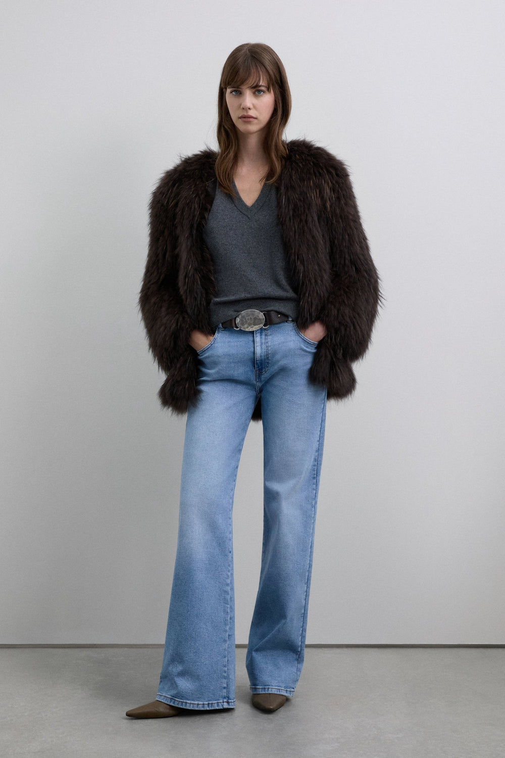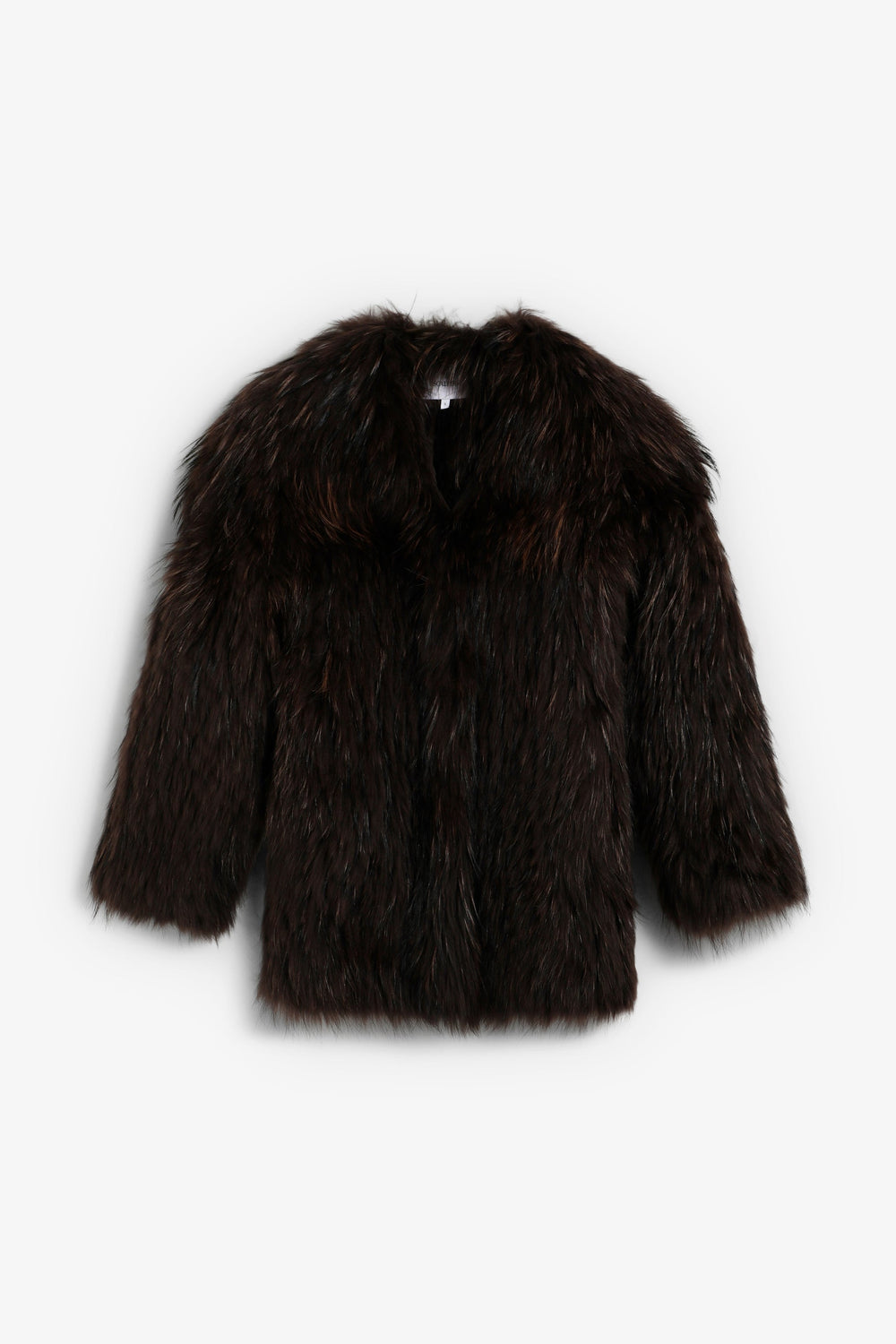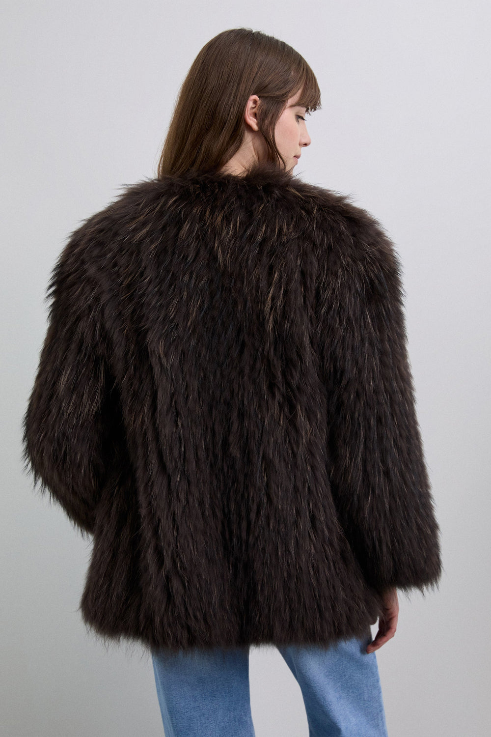Premium coat made of 100% fur. Regular fit. V-neck. Long sleeves. Hook fastening.