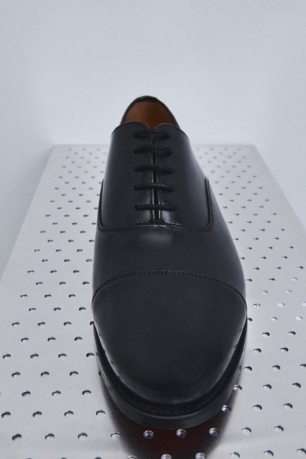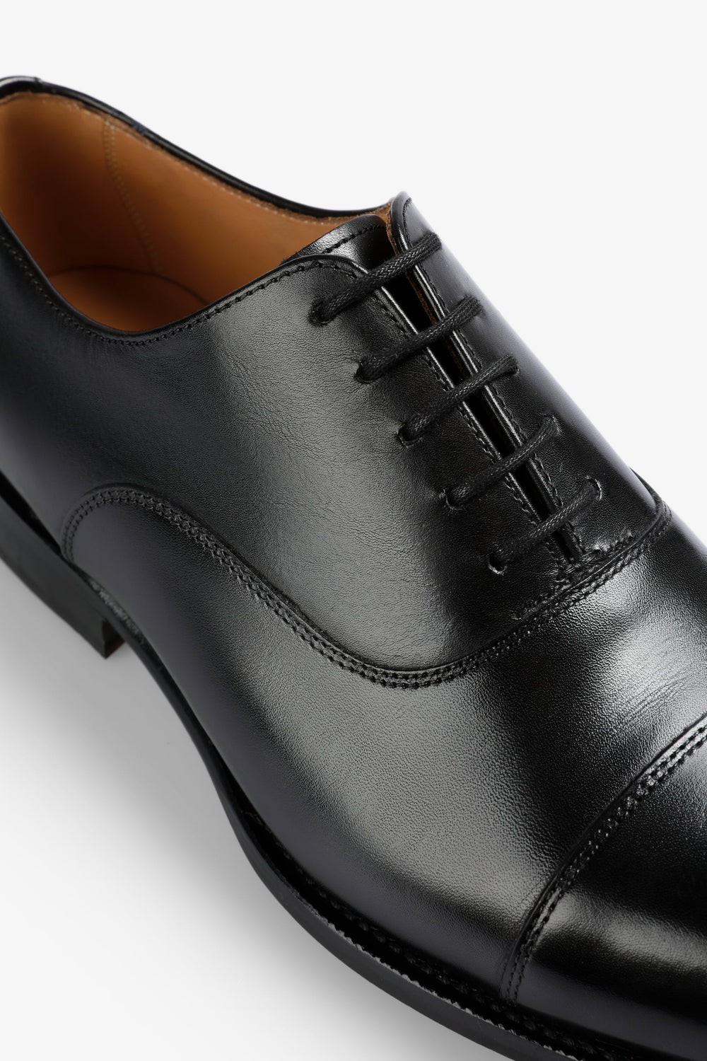 Oxford shoes made of nappa leather. Leather soles and refined toe cap with double stitching. Matching lace-up fastening. Embroidered logo detail on the sole.