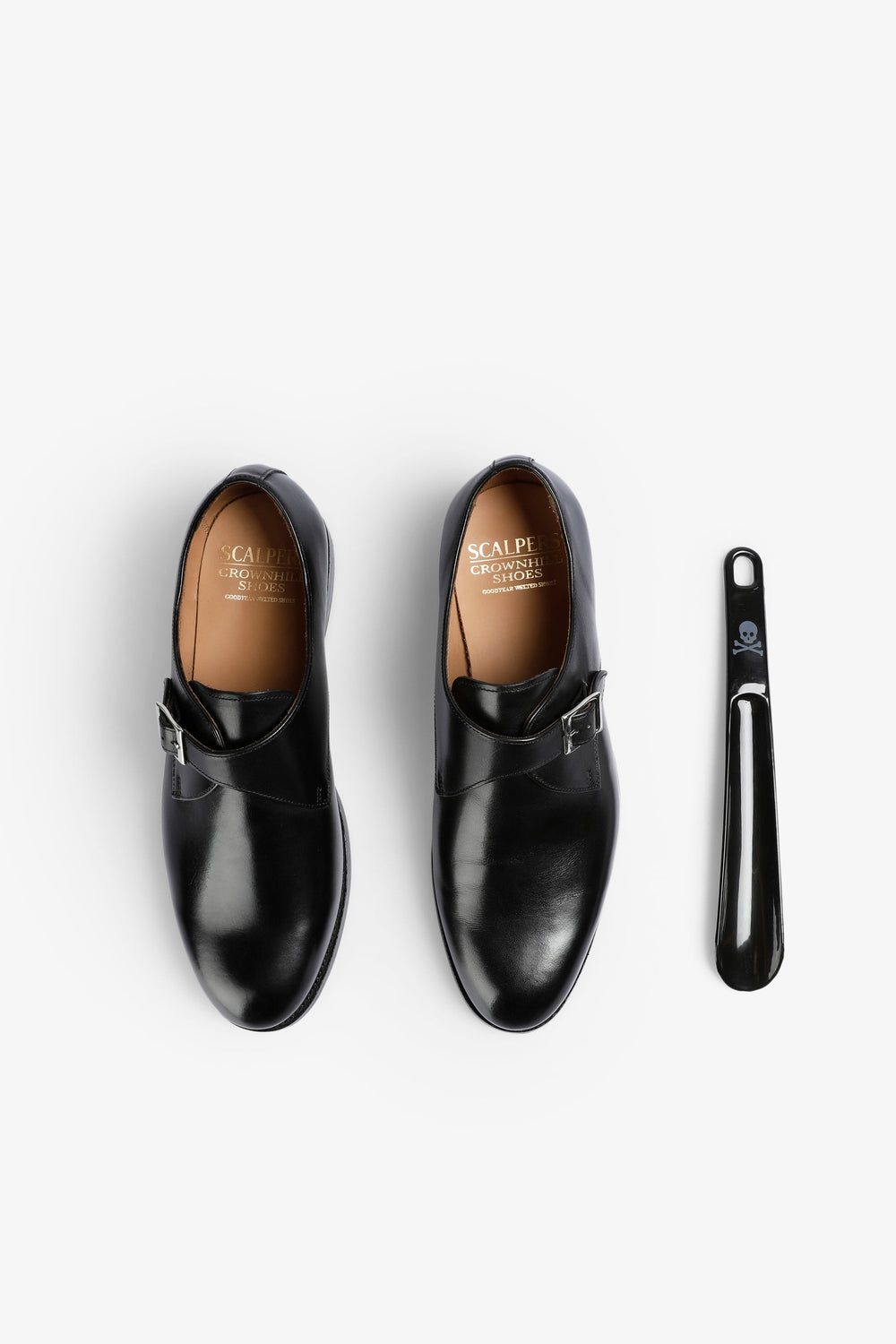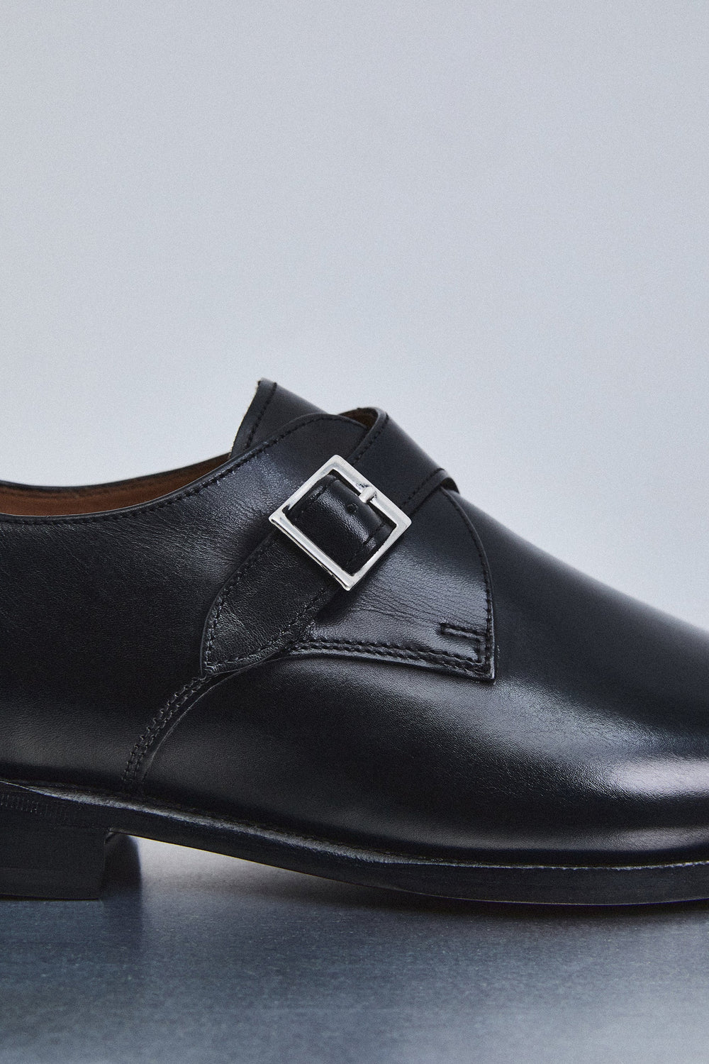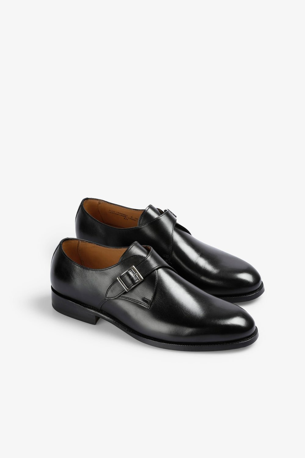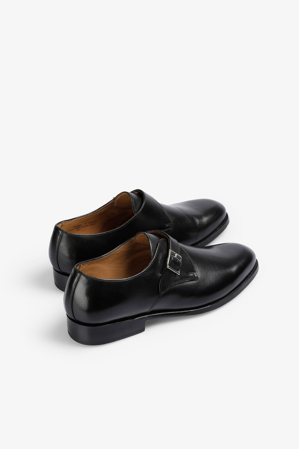 Monk shoes made in leather. Adjustable metal buckle. Leather sole. Logo detail on sole