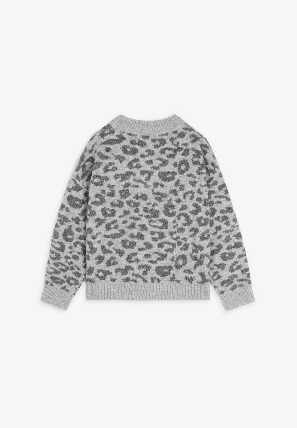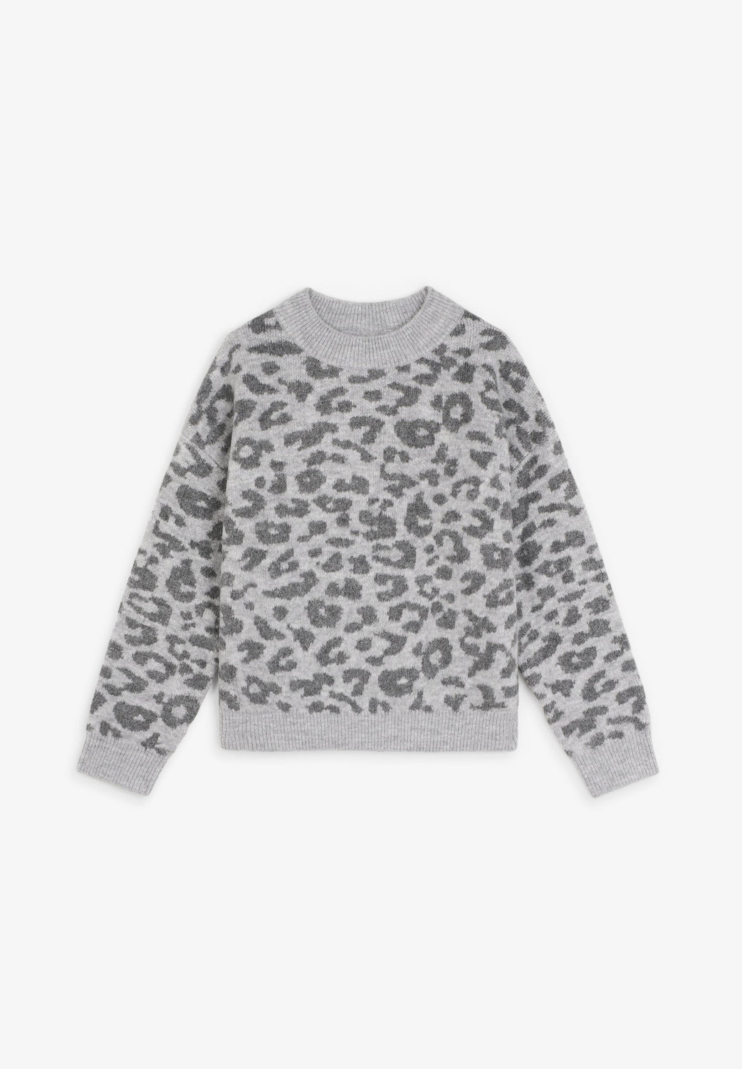 Jersey de punto. Manga larga. Cuello redondo. Estampado animal print. Acabados en rib a contraste.