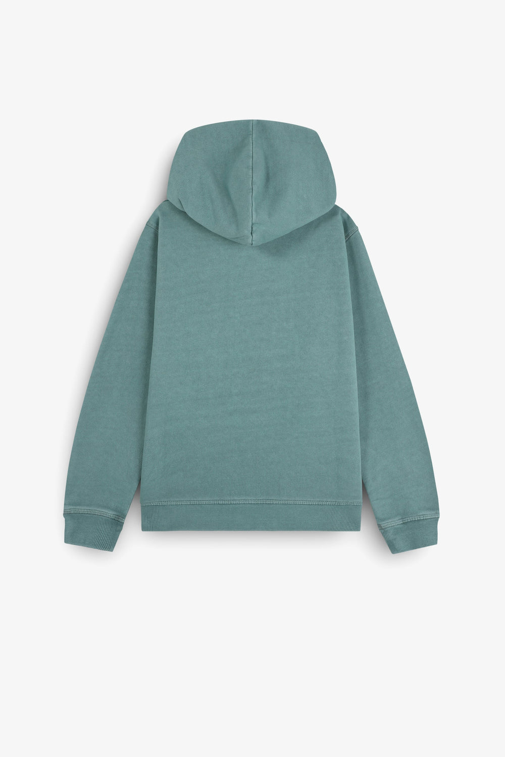 Sudadera con capucha ajustable confeccionada en 100% algodón BCI. Corte regular fit. Manga larga y cuello redondo. Print calavera frontal a tono. Acabados en rib.