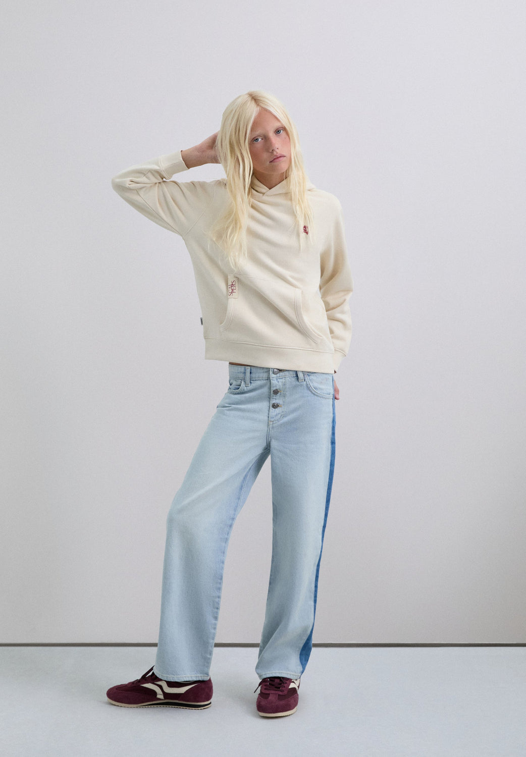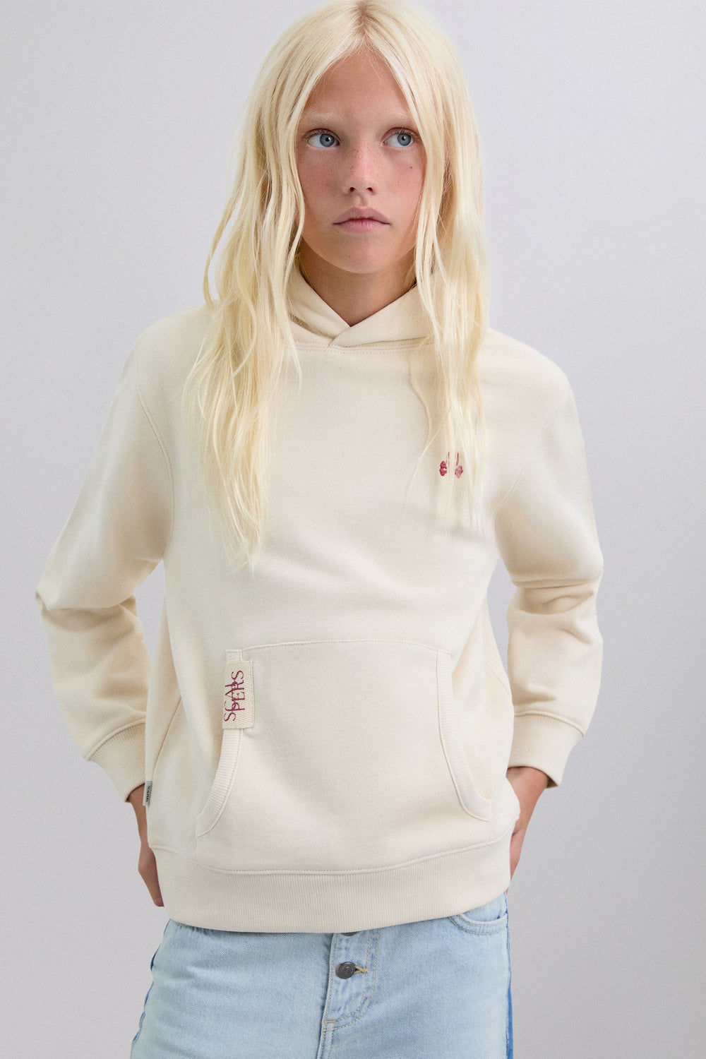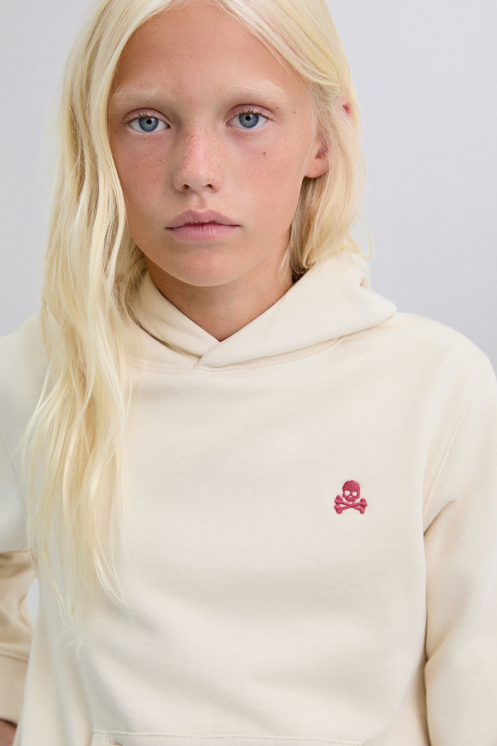 Sweatshirt with hood made of 100% BCI cotton. Long sleeves. Contrast embroidered skull detail on the chest and embroidered logo on the back. Front pocket pouch pocket with contrast logo detail. Ribbed trim on waistband and cuffs.