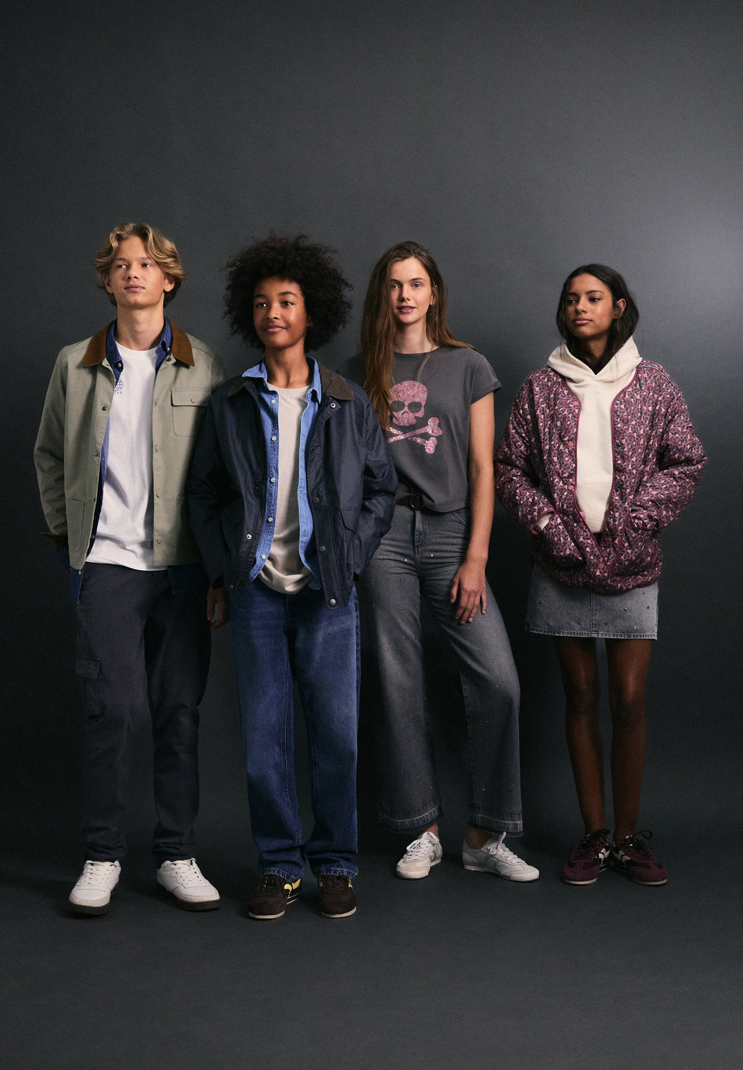 Puffer jacket made of a synthetic blend. Animal print. Button fastening. Slightly V-neck. Long sleeves. Two front pockets.