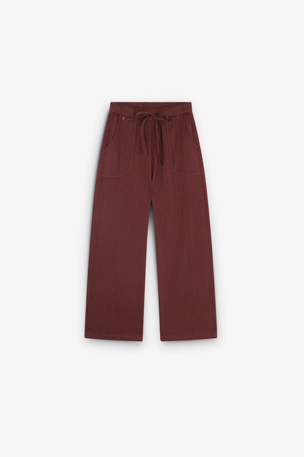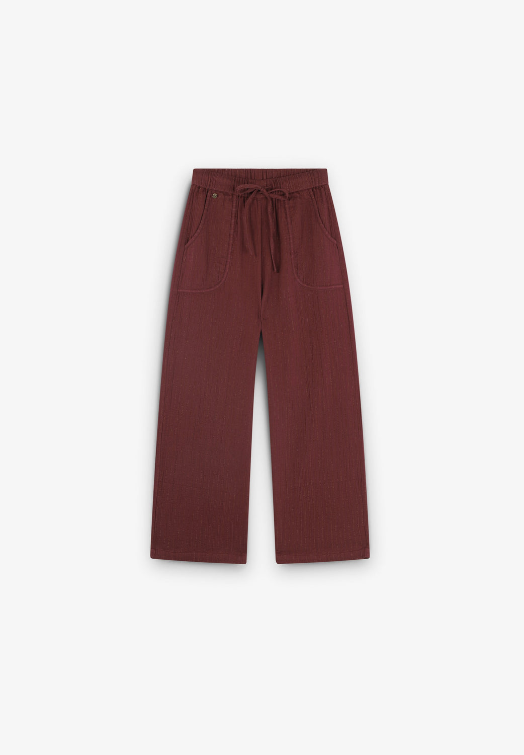 Pantalón culotte confeccionado en algodón BCI. Dos bolsillos frontales. Cintura ligeramente elástica con cierre mediante cordón. Detalle de calavera.