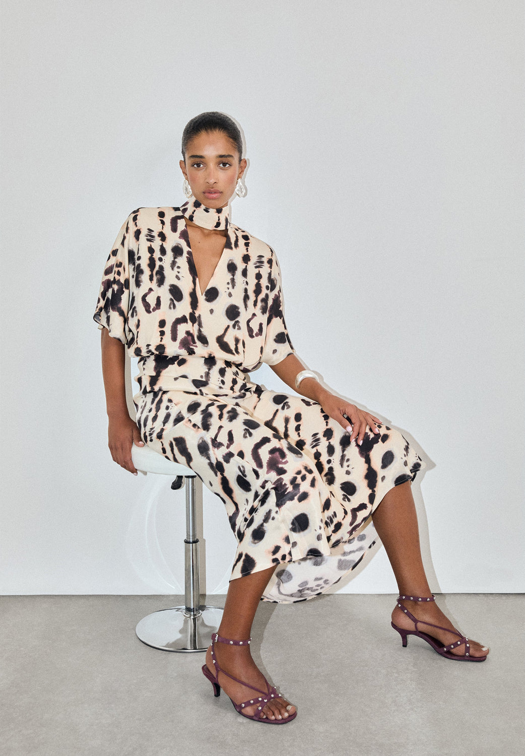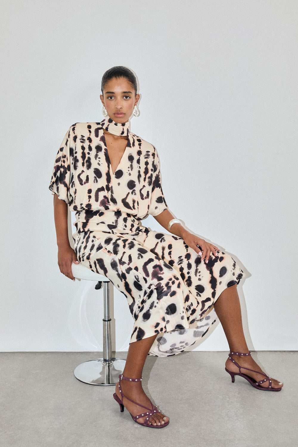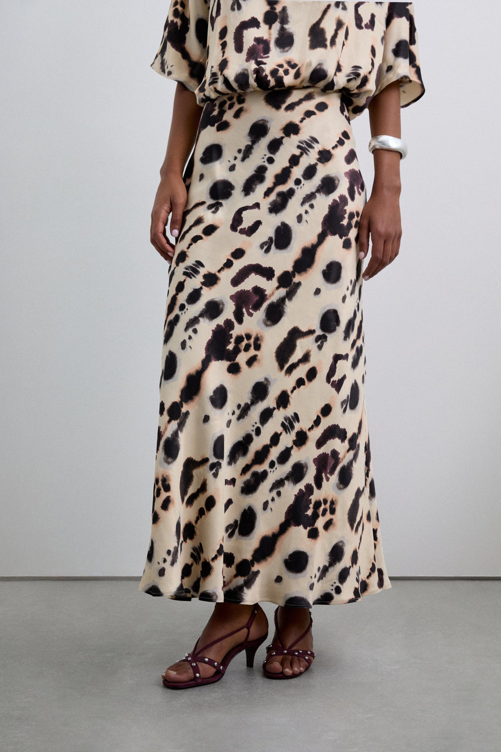 Midi skirt made of 100% viscose. Flowing printed fabric.