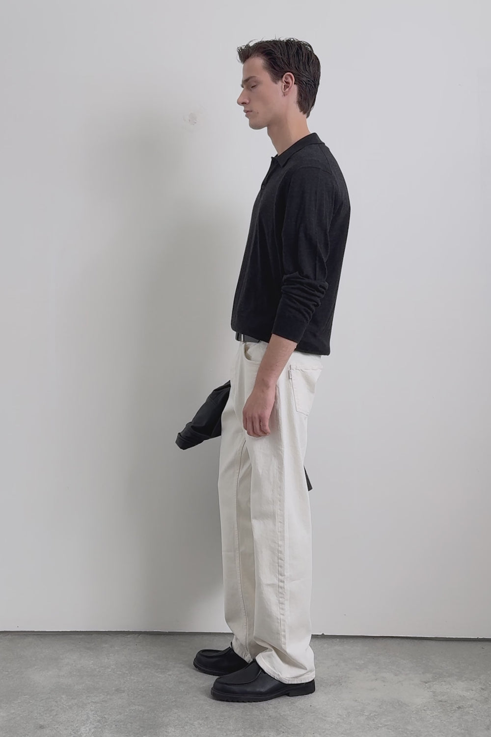 Sweater made of 100% wool. Long sleeves. Polo shirt collar. Button fastening.