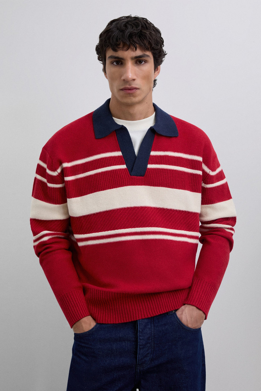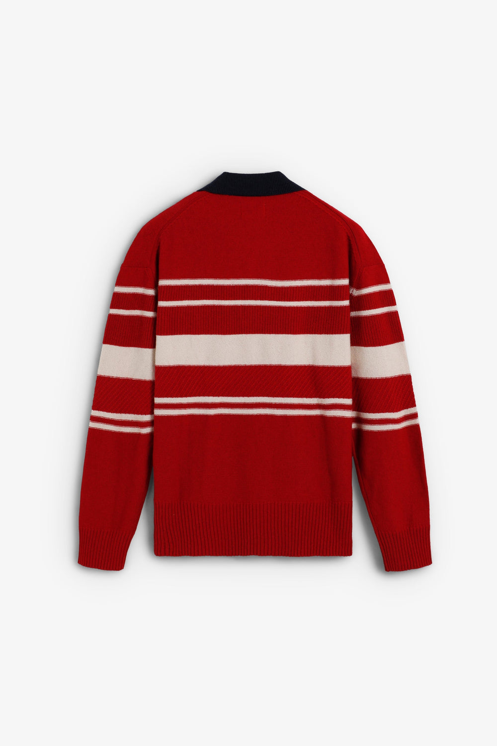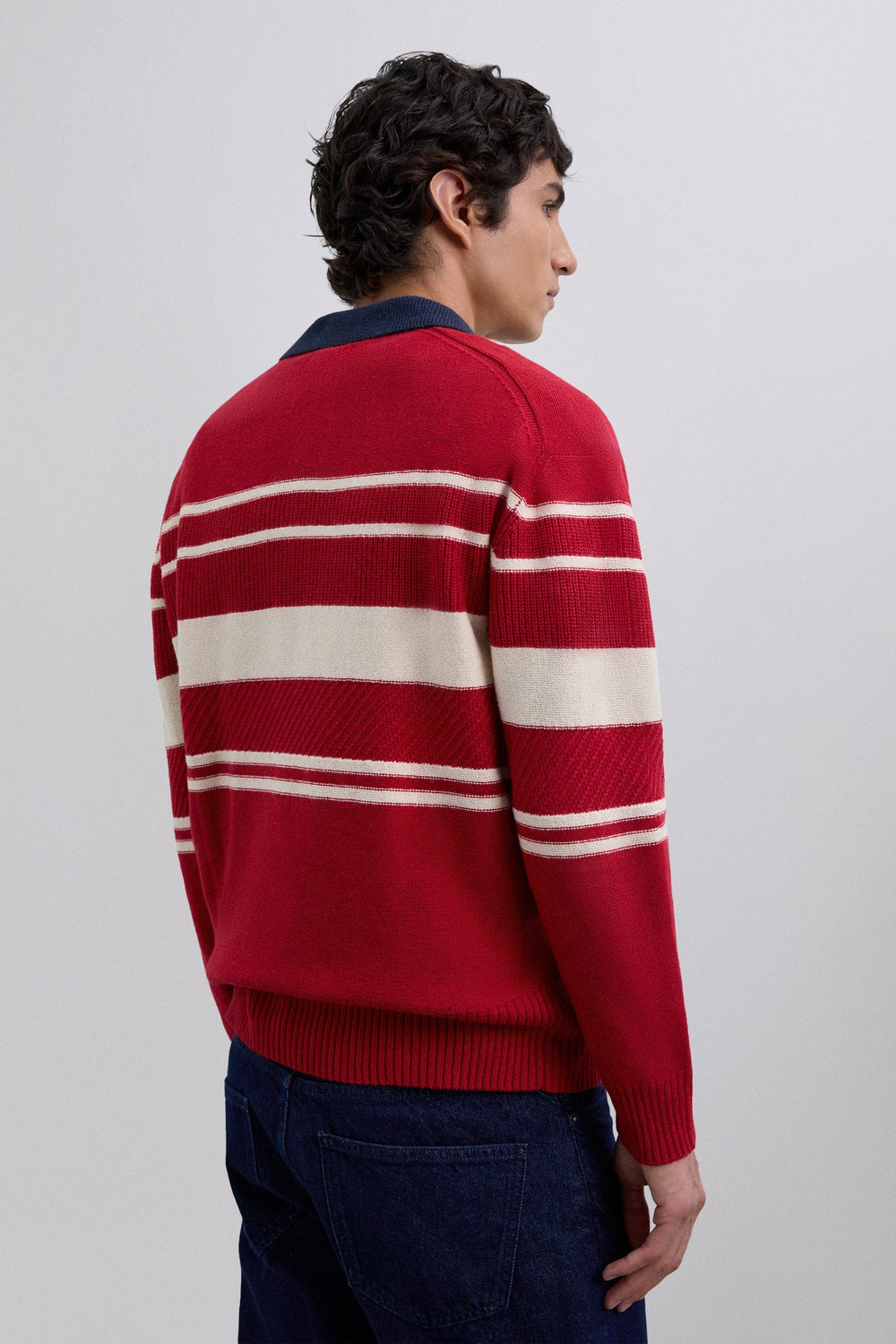 Wool and BCI cotton sweater. Regular Fit. Stripe print. Contrast polo shirt collar. Long sleeves. Ribbed trim.