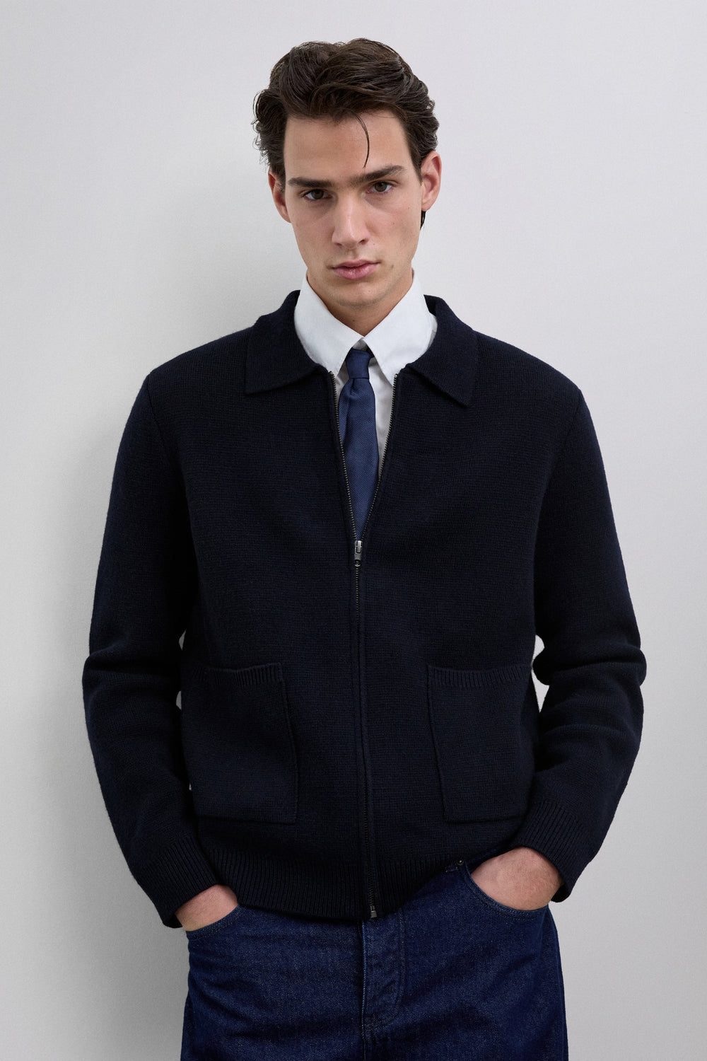 Cardigan made of 100% merino wool. Zip fastening. Front pockets. Long sleeves. Regular fit. Ribbed trim.