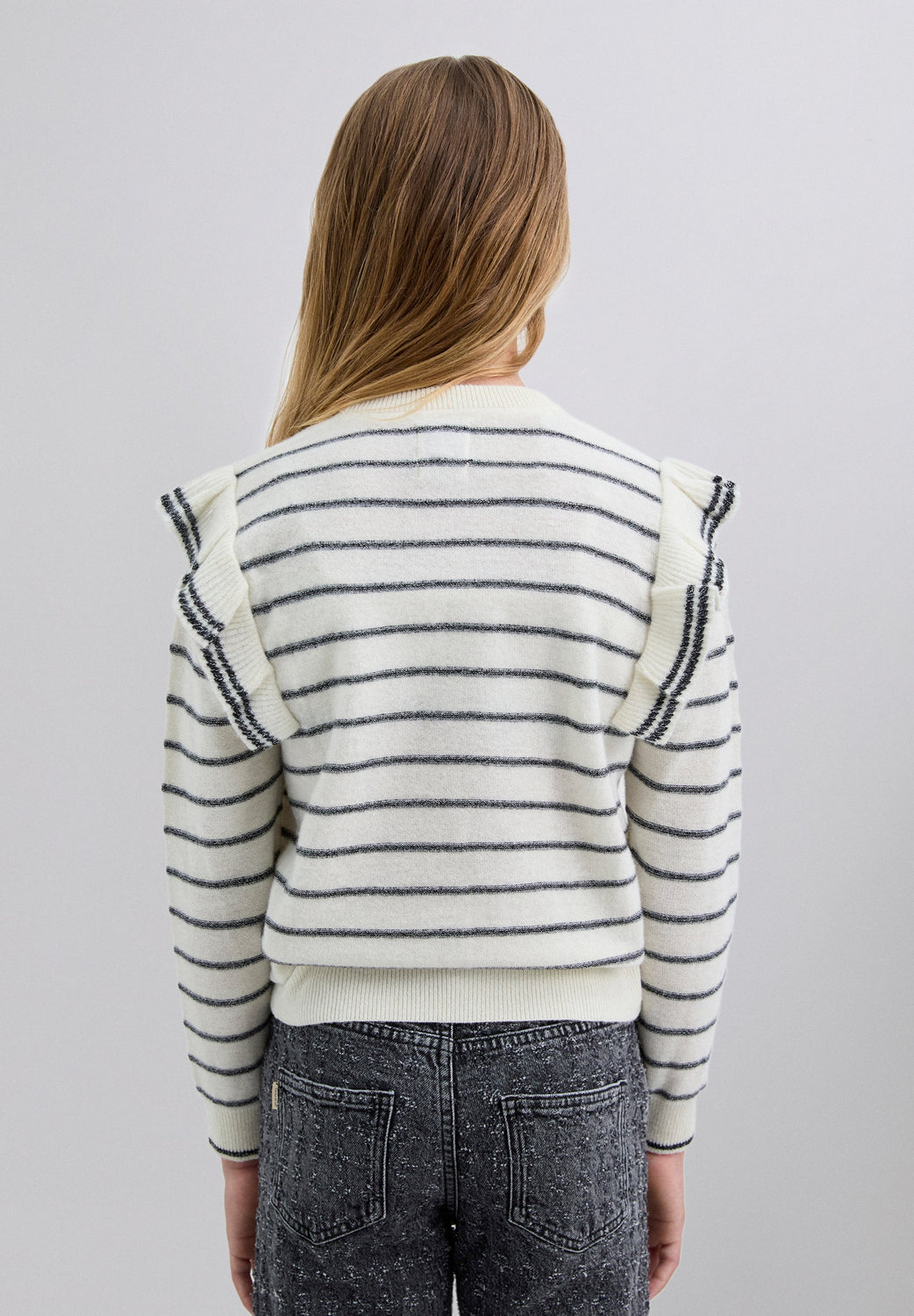 STRIPED SWEATER WITH RUFFLE