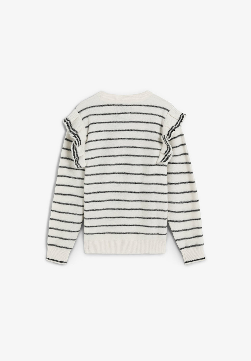 Striped sweater made of a wool blend. Round neck. Regular fit. Ruffle detail on shoulders and logo on chest.