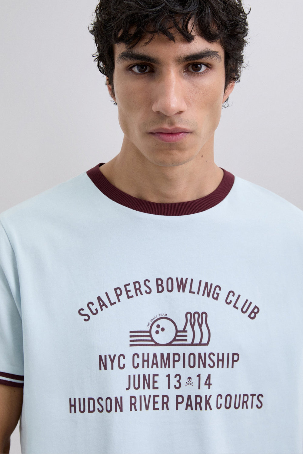 T-shirt made of 100% BCI cotton. Short sleeve. Front print. Regular fit. Contrast ribbed trim on collar and cuffs.