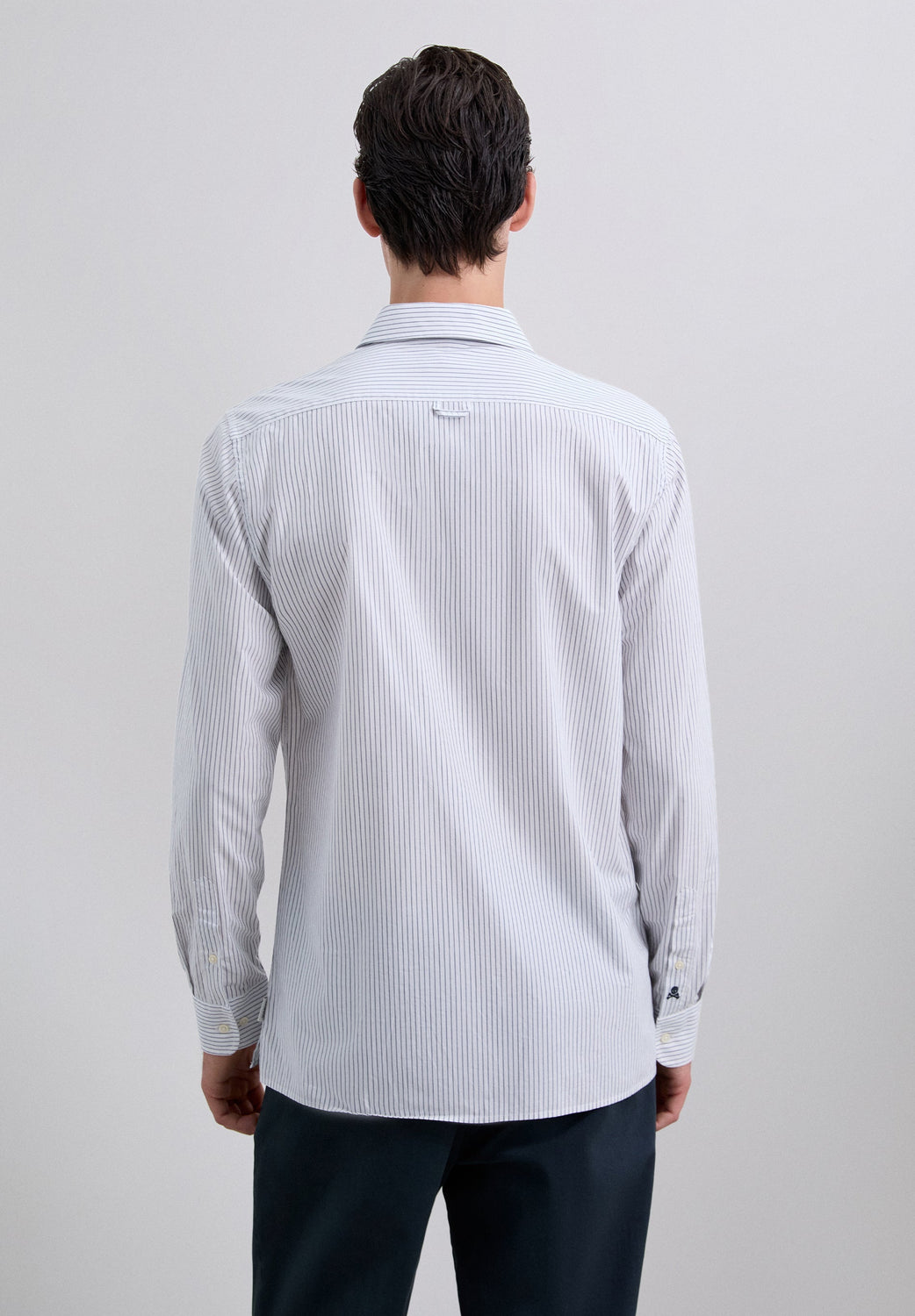 Shirt made of 100% organic cotton. Long sleeves with buttoned cuffs. Shirt collar. Front button fastening. Stripe print. Chest pocket. Embroidered logo on the cuffs.
