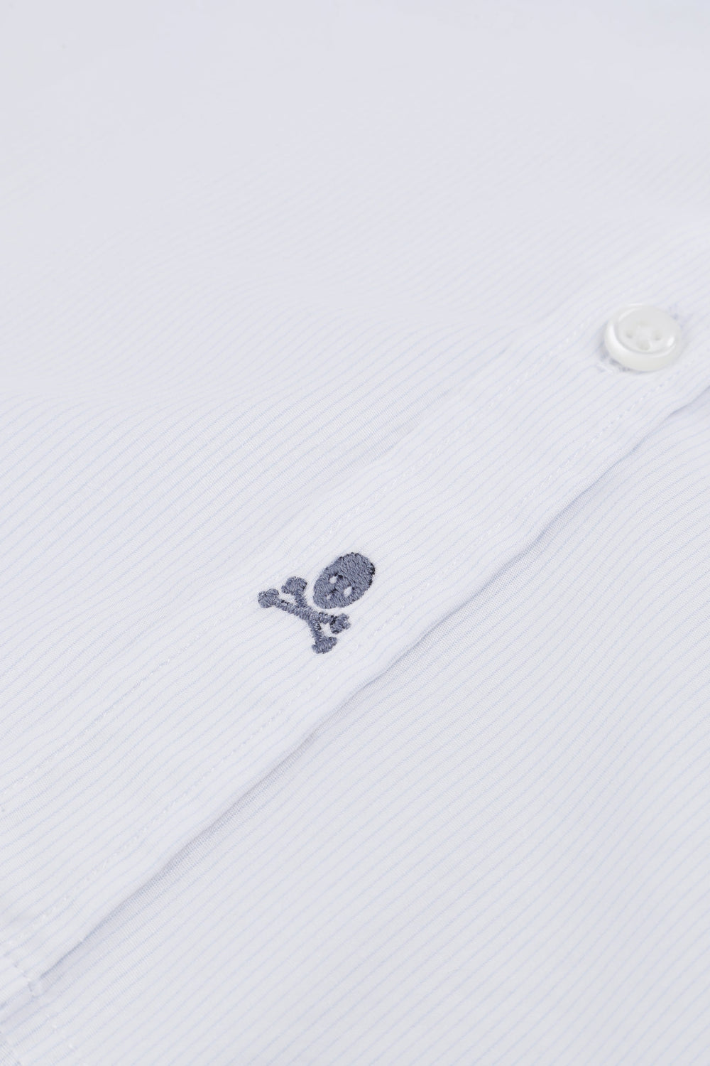 Striped dress shirt. Made of 100% cotton. Slim fit. Italian collar. Button fastening. Long sleeves with cuffs. Embroidered skull on placket.