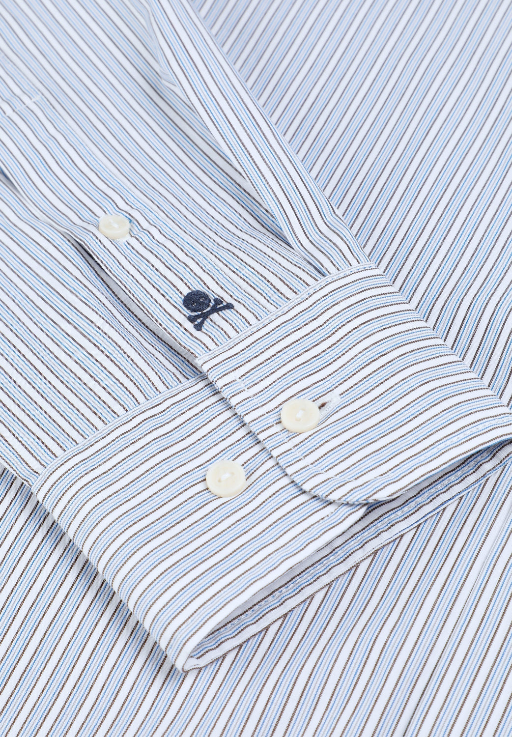 Shirt made of 100% BCI cotton. Long sleeves. Stripe print. Chest pocket. Contrast embroidered skull detail on the cuff.