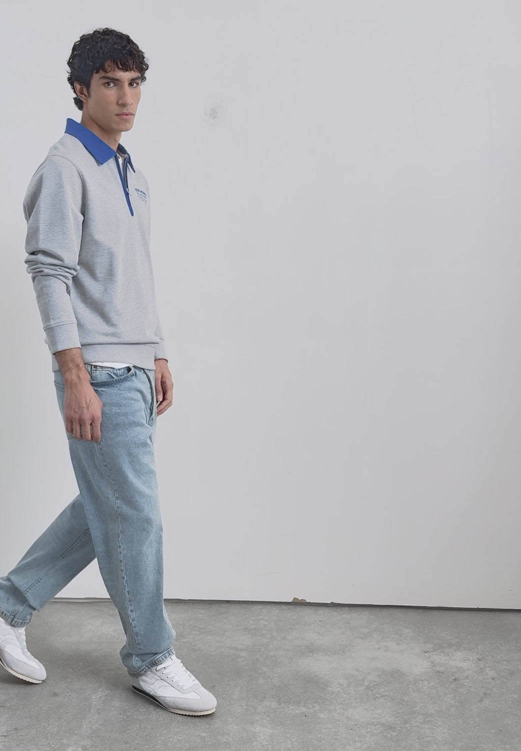 Sweatshirt made of 100% BCI cotton. Polo collar with half zip. Regular fit. Long sleeves. Contrast skull and embroidered logo. Ribbed trim.