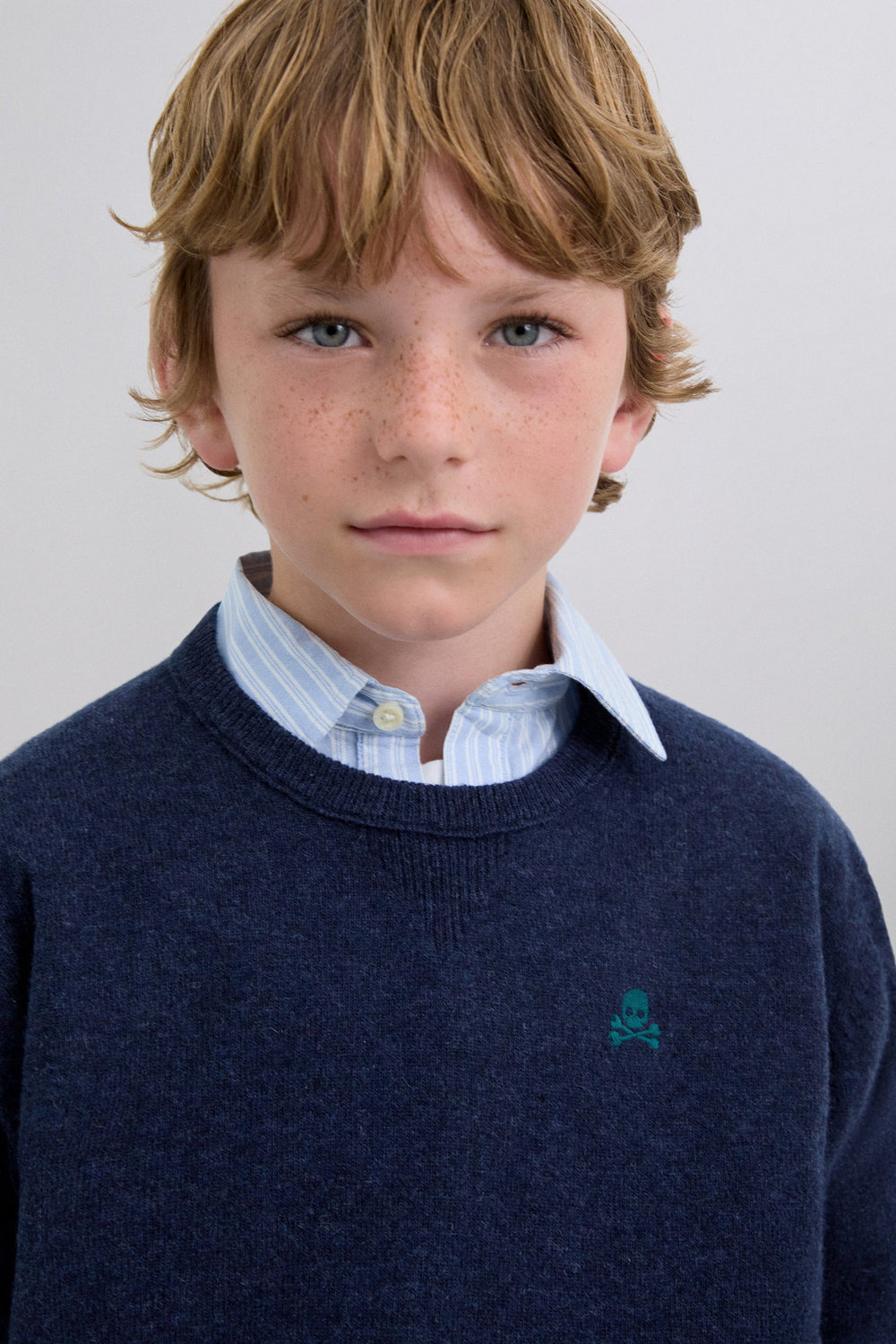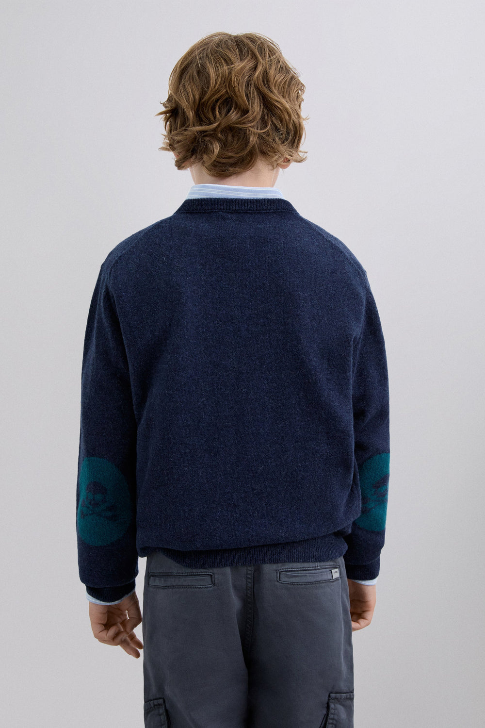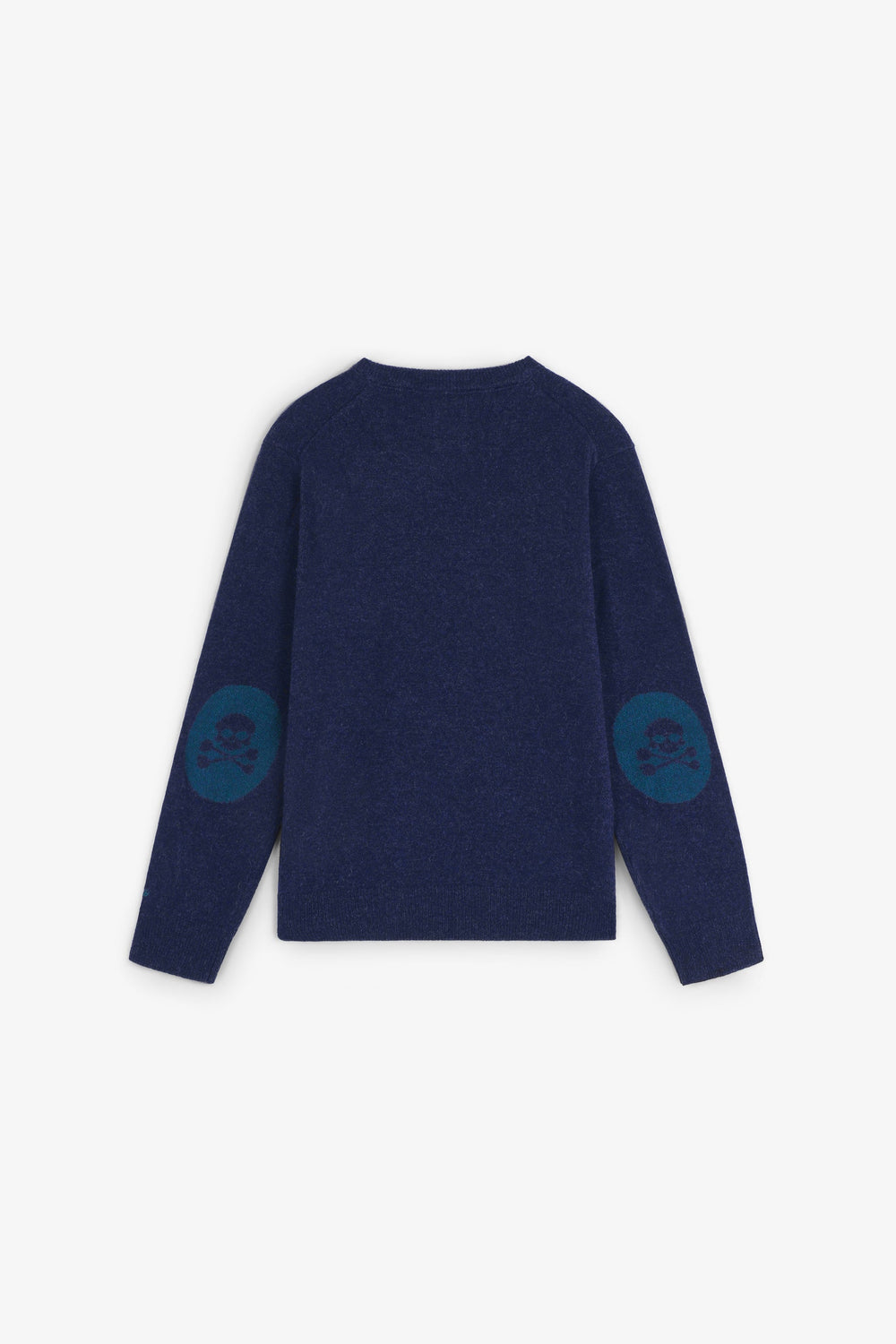 Sweater with contrast skull detail on the elbow pads. Made of a wool blend. Regular fit. Round neck. Long sleeves. Contrast skull on the chest