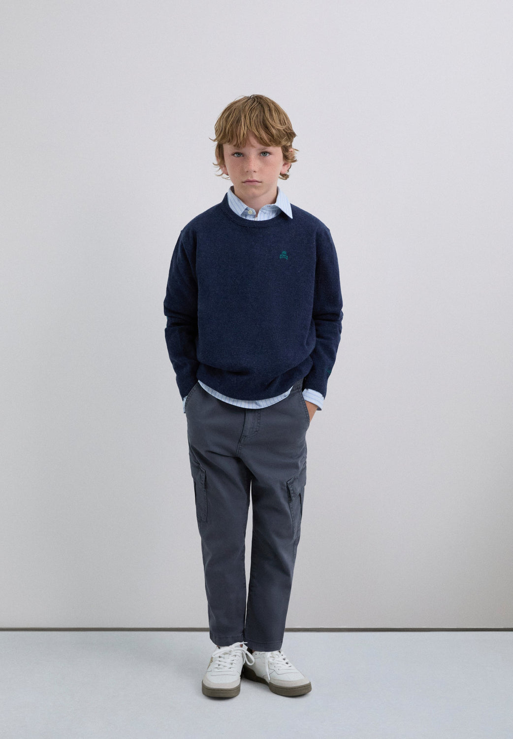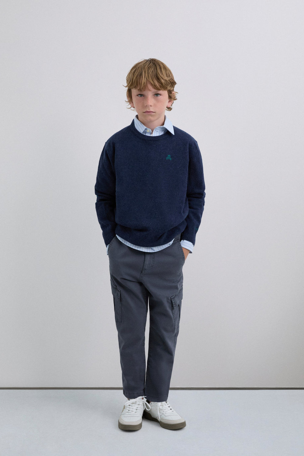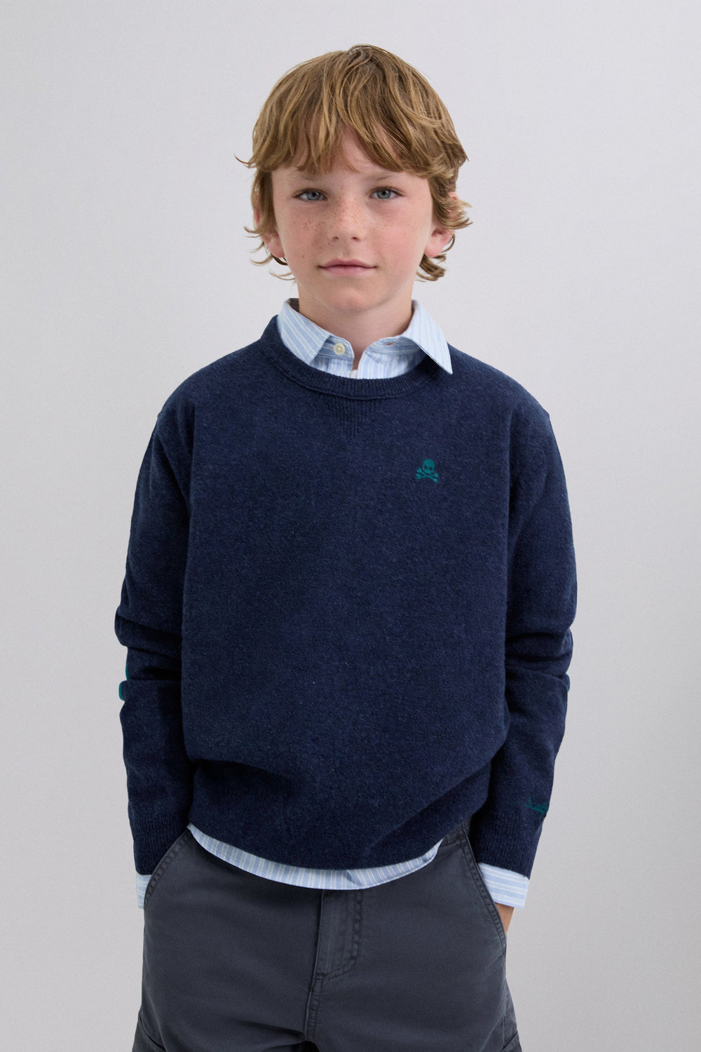 Sweater with contrast skull detail on the elbow pads. Made of a wool blend. Regular fit. Round neck. Long sleeves. Contrast skull on the chest
