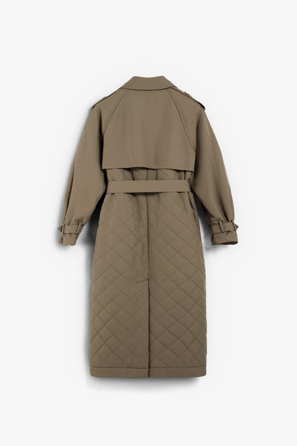 Quilted, waterproof trench coat made of cotton. Quilted detail at the bottom. Slightly oversize sleeves and cuff tabs. Front button fastening and adjustable belt.