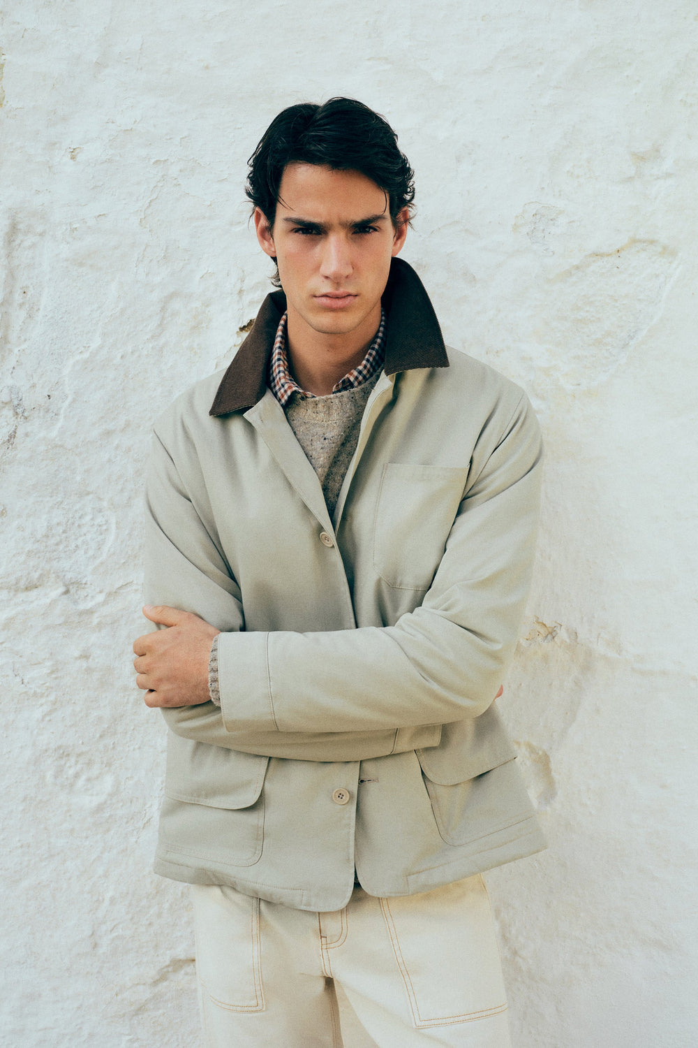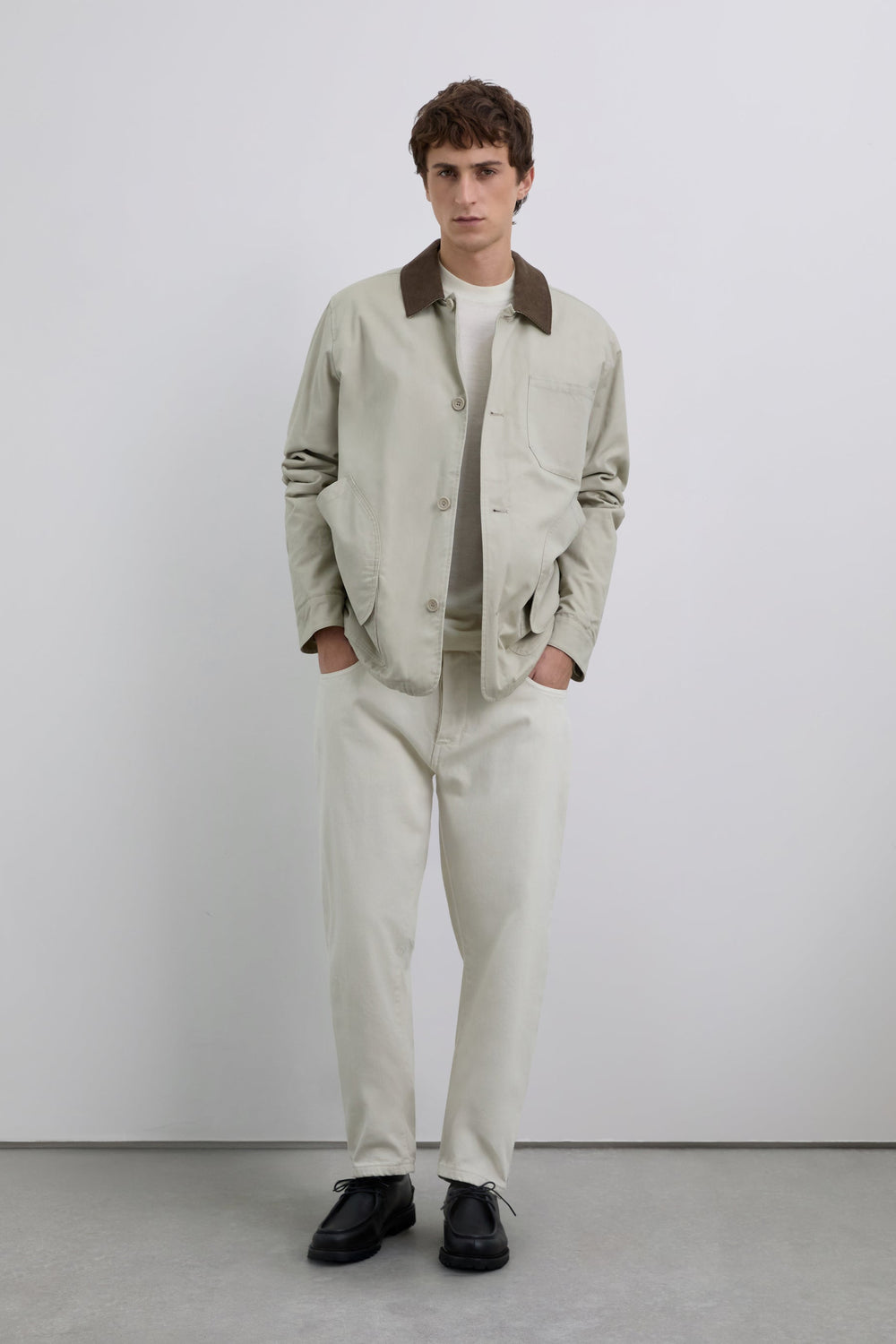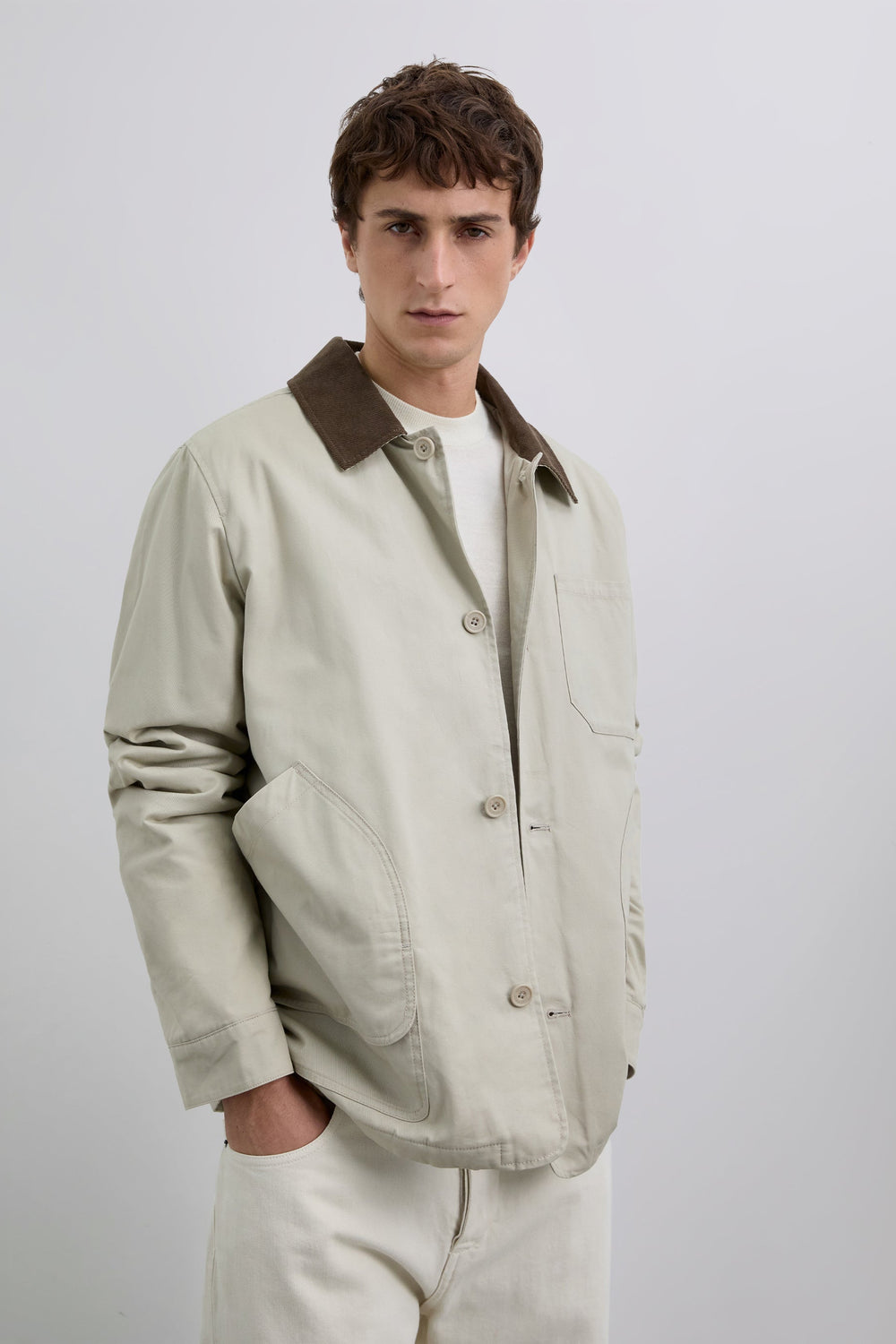 Jacket made of 100% cotton. Contrast corduroy collar. Button fastening. Chest patch pocket and two side slanted pockets. Long sleeves. Cuffs with button fastening.