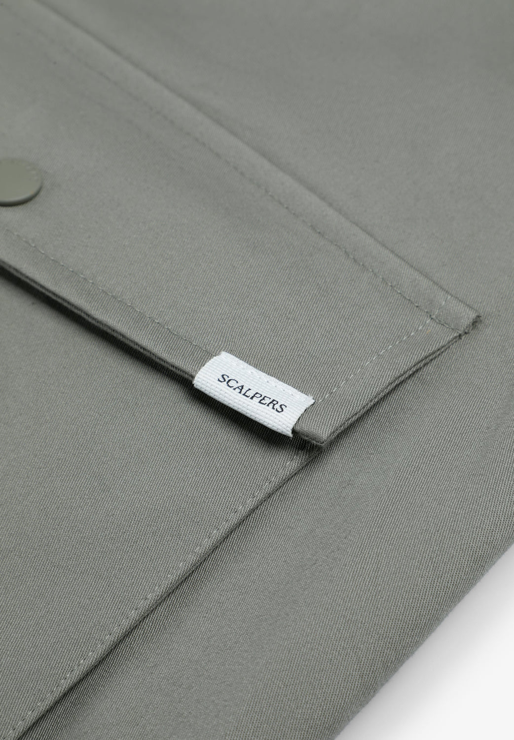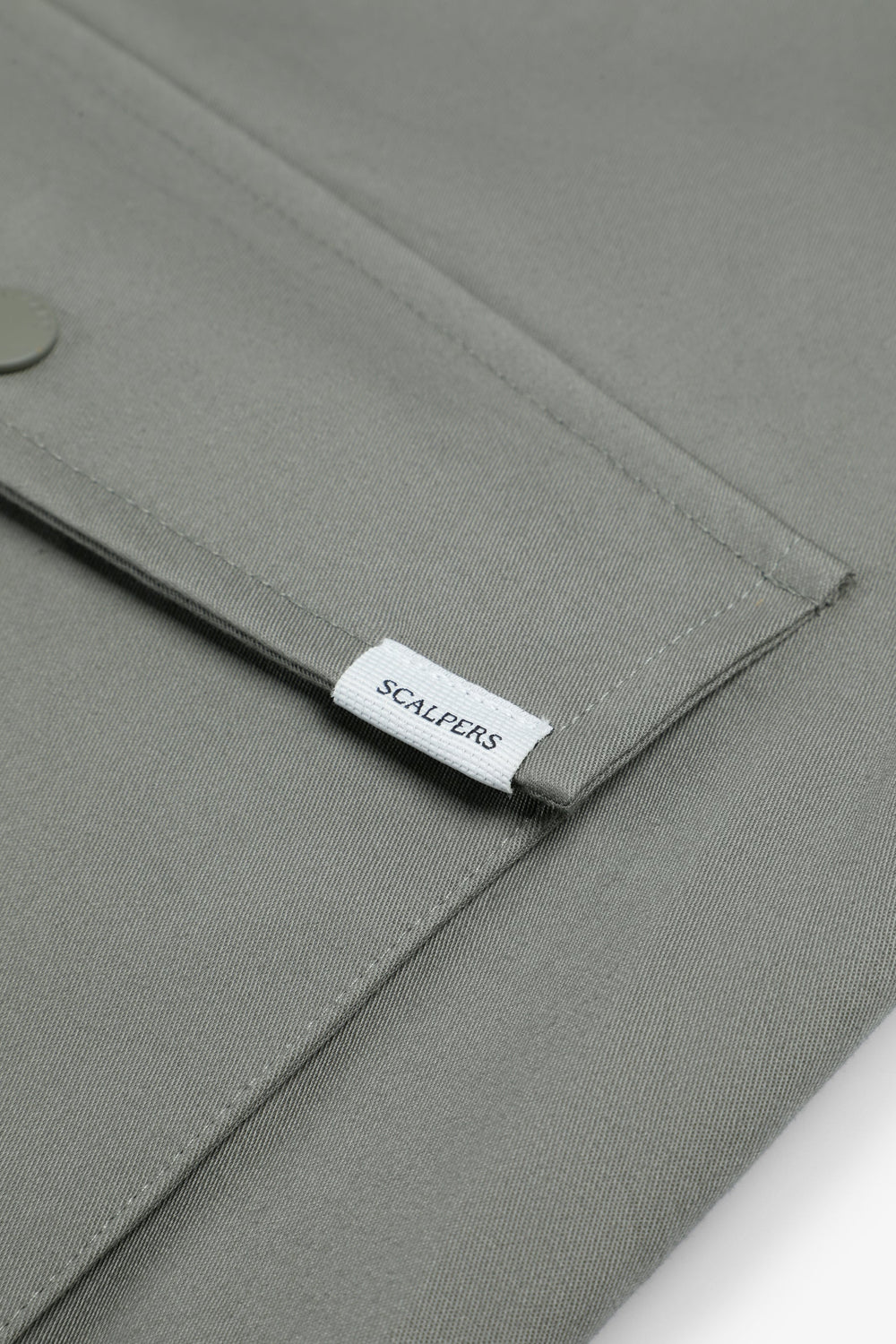 Waterproof technical jacket made of 100% cotton. Adjustable drawstring hood with leather detail. Raglan sleeves. Velcro cuff adjusters. Front fastening with double slider thermo-sealed zip and customised snaps. Two front-flap double-entry pockets (top and side access) with snap fasteners. Logo label detail on the front pocket.