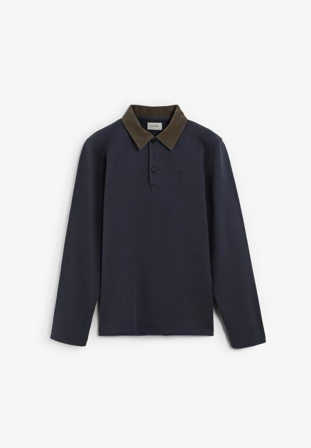 Polo shirt made of 100% BCI cotton. Contrast corduroy collar with button fastening. Long sleeves. Matching embroidered logo on the chest.