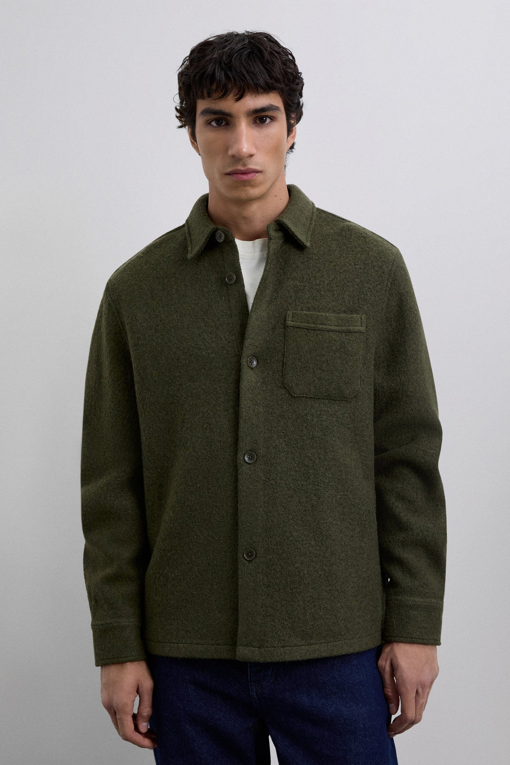 Overshirt made of a wool blend. Regular fit, classic collar and button fastening. Long sleeves with buttoned cuffs. Pocket on the chest.