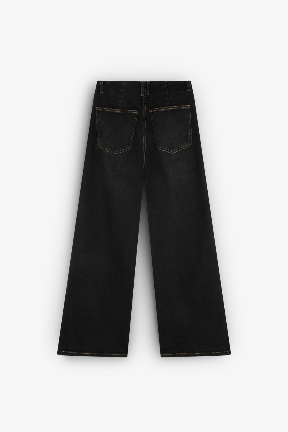 Jeans made of a slightly stretch cotton fabric. Culottes with high waist and zip and button fastening. Front and back pockets.