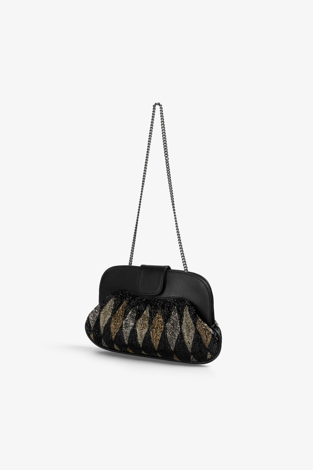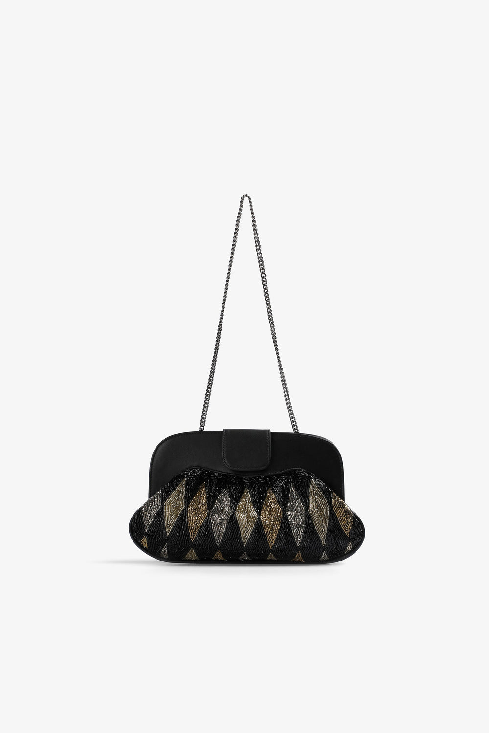Handbag. Beaded detail. Detachable metal crossbody strap. Magnetic closure. Embroidered logo detail on the inside.