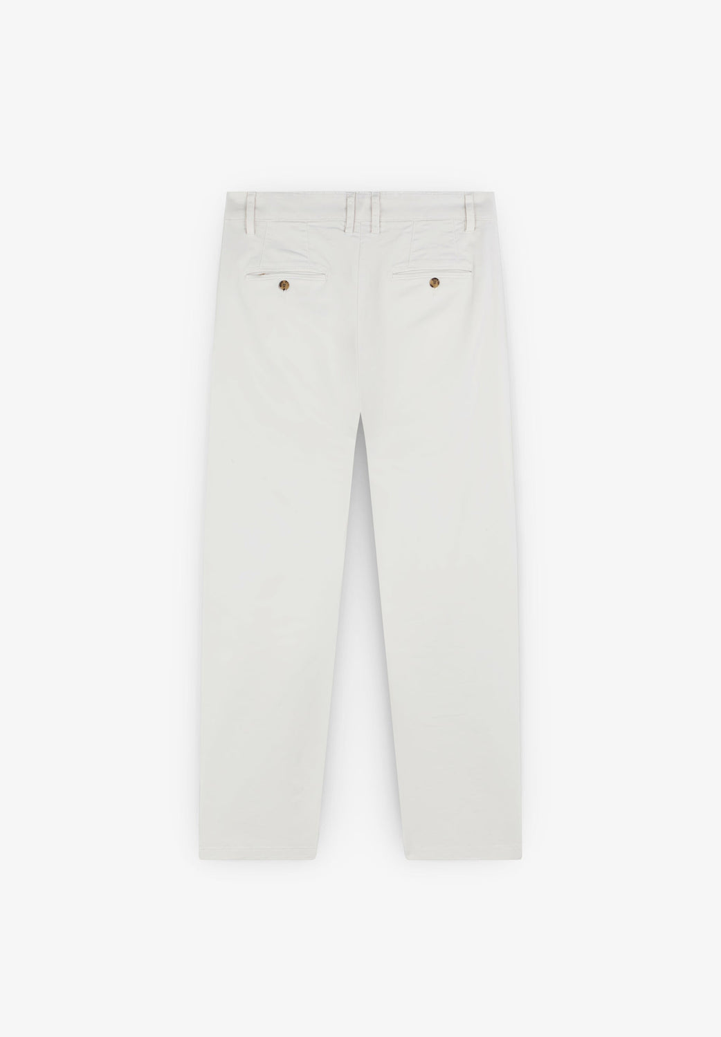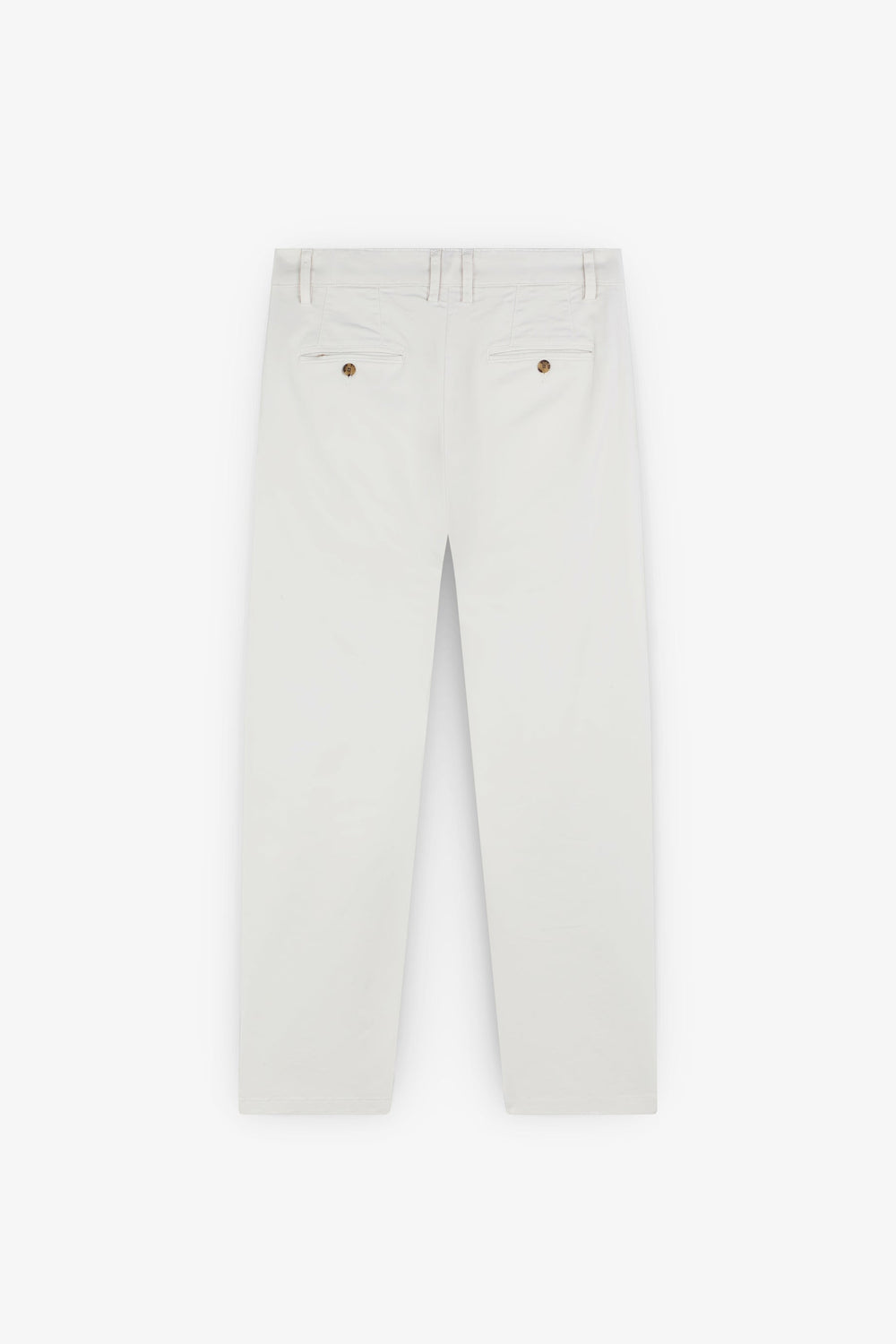 Pantalón chino confeccionado en mezcla de algodón BCI ligeramente elástico. Relaxed fit con pinzas, cierre con botón y cremallera y bolsillos laterales. Trabillas en cintura.