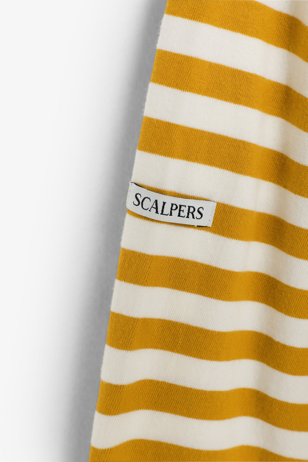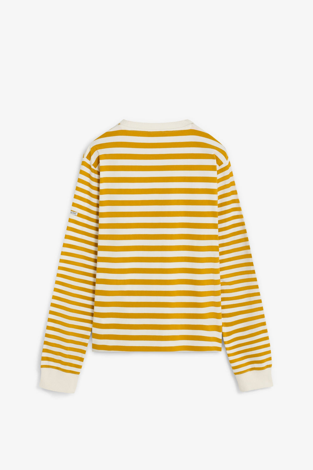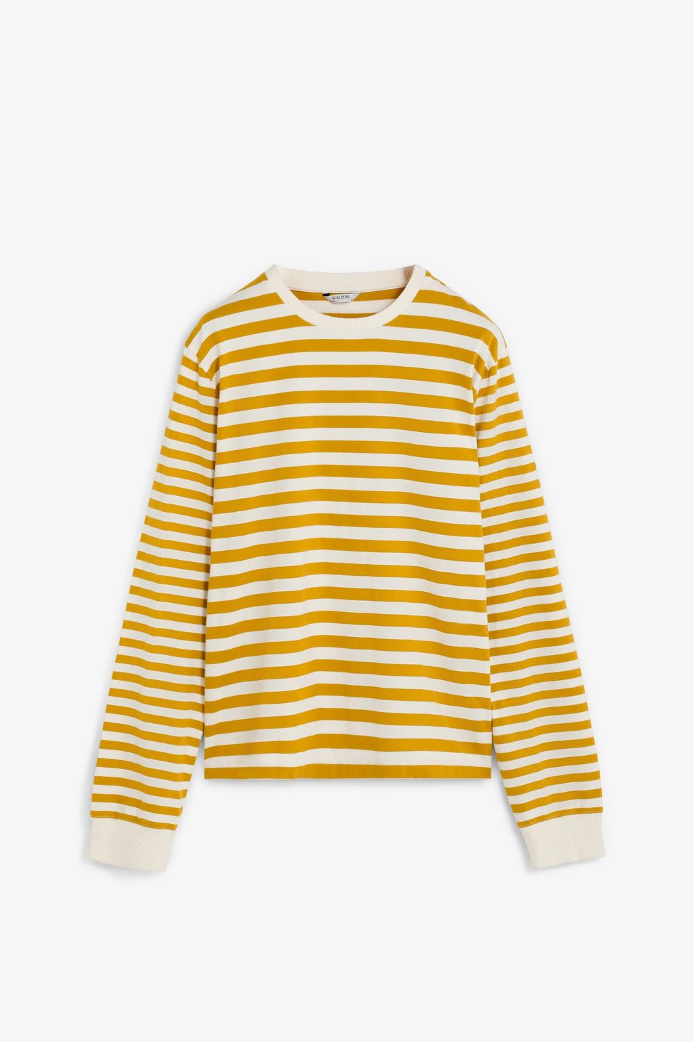 Camiseta con estampado de rayas. Confeccionada en 100% algodón BCI. Corte Regular Fit. Cuello redondo. Contraste en cuello y puños. Manga larga.