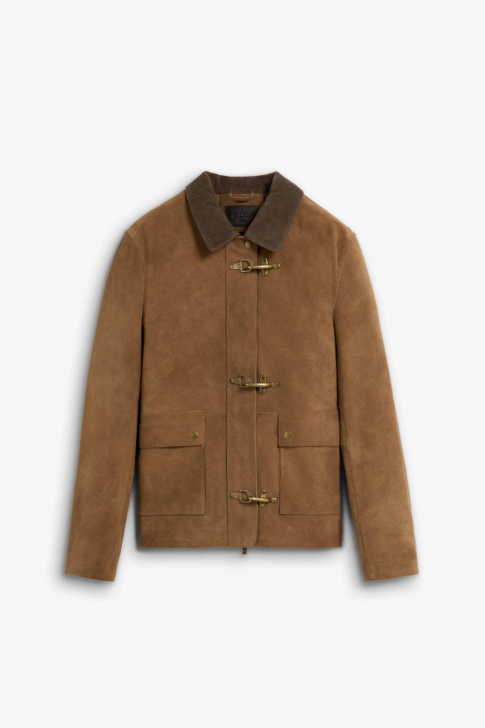 Jacket made of 100% leather. Long sleeves. Corduroy collar. Metal toggle and zip fastening at front. Two buttoned patch pockets.