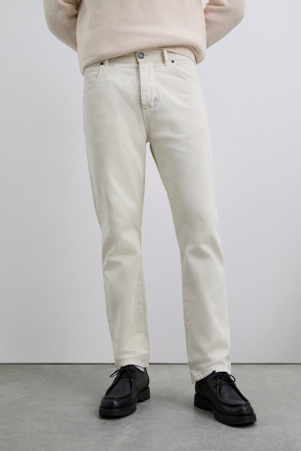 Trousers made of 100% cotton. Straight cut. Button and zip fastening. Side and back pockets. Belt loops at the waist.