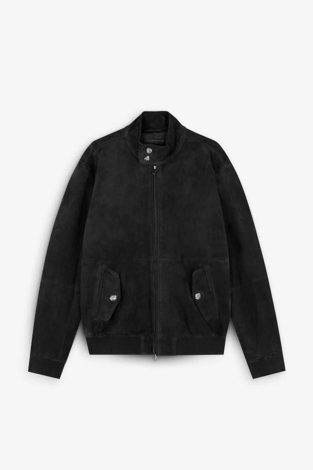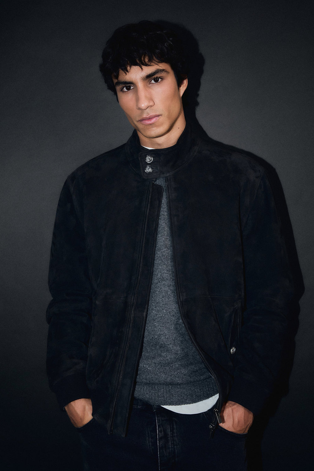 100% goatskin jacket. Fitted. Two-way zip. Ribbed collar, cuffs and waistband. Two front pockets with button fastening. Two button fastening collar.