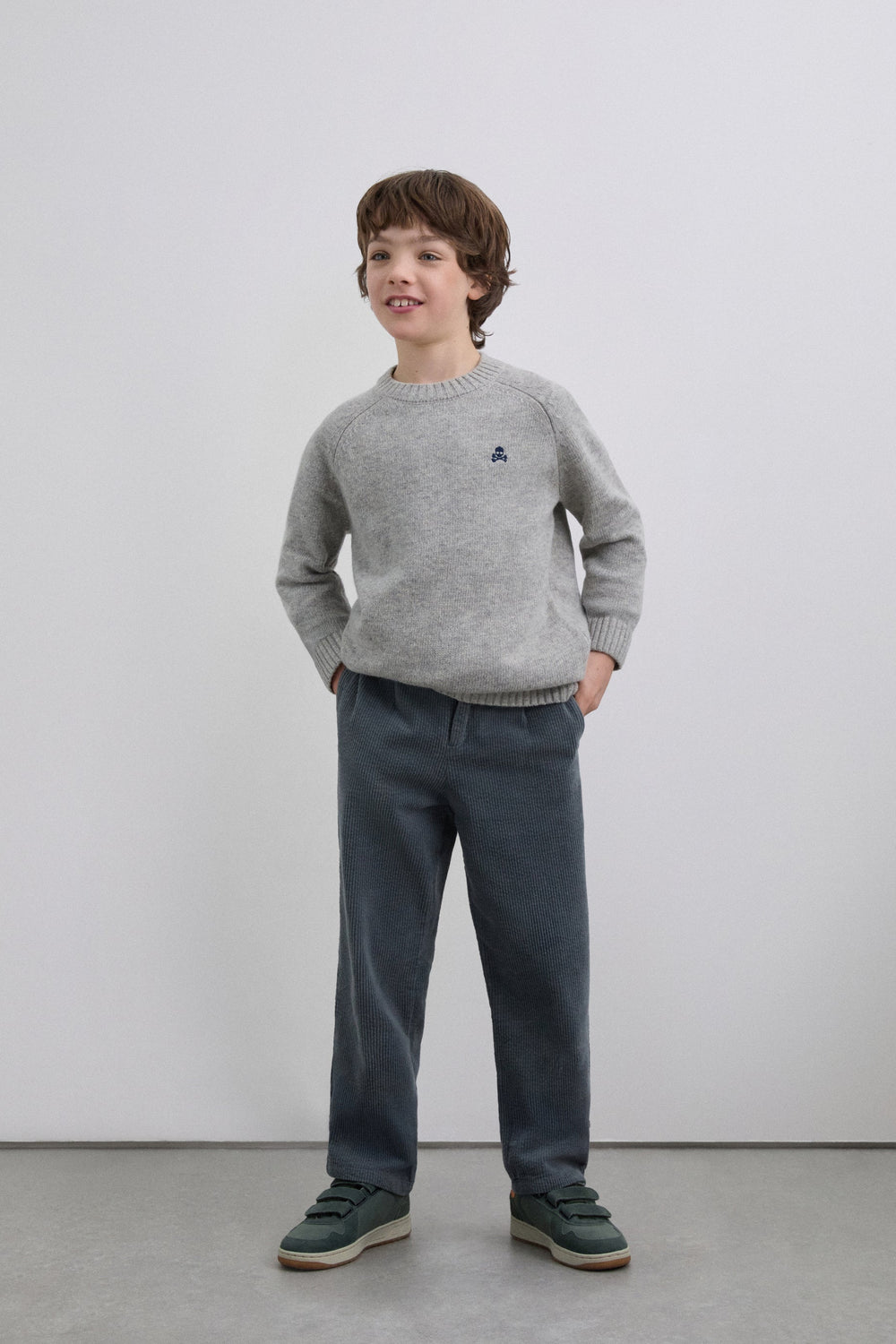 Straight corduroy trousers made of a slightly stretch cotton blend fabric Button closure. Front and back slanted pockets. Back label detail with logo.