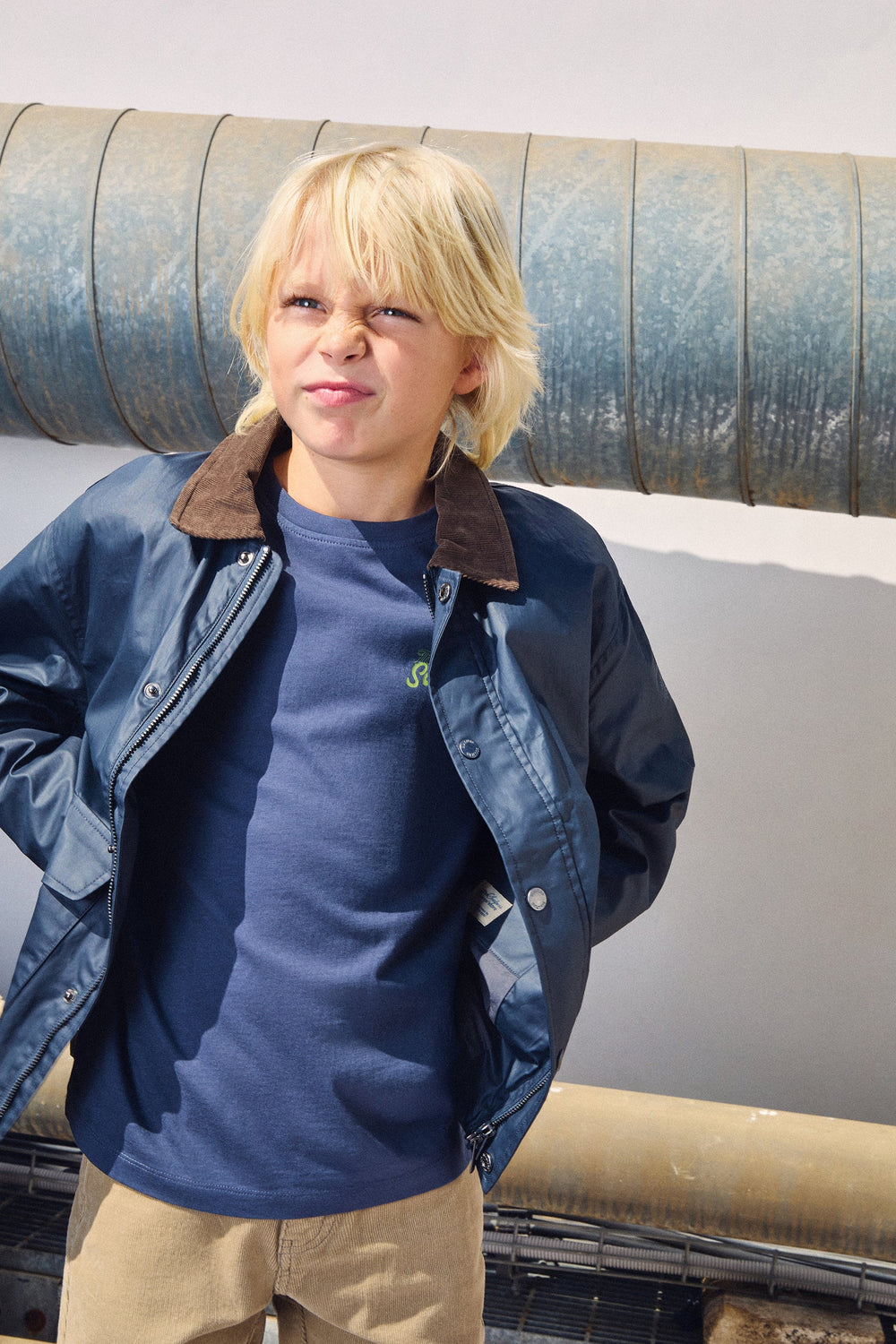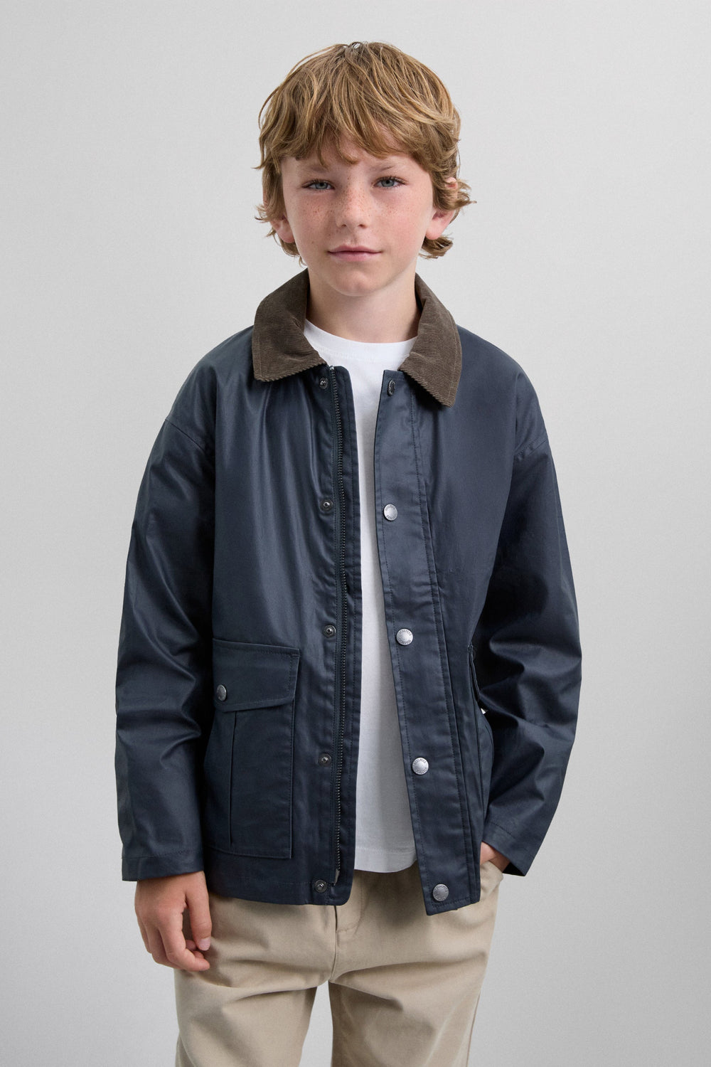 Jacket made of 100% BCI cotton. Contrast corduroy collar. Regular Fit. Long sleeves. Zip and button fastening. Front patch pockets with flap and button fastening.