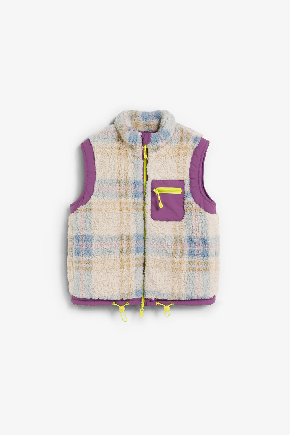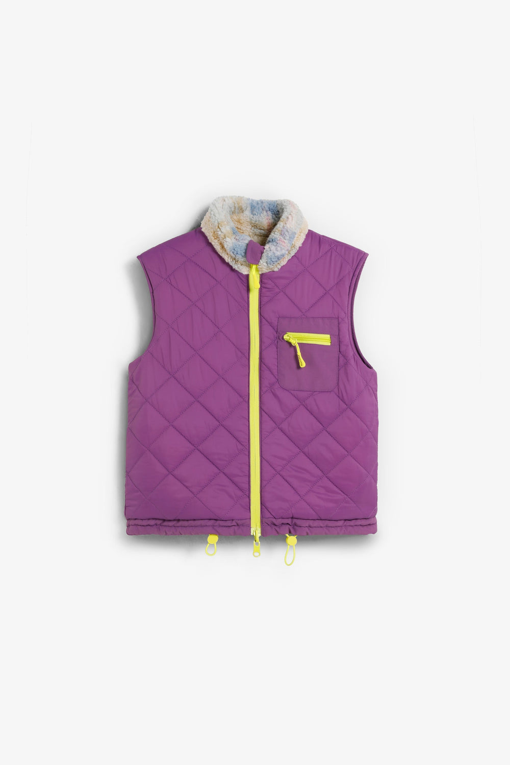 Reversible gilet. Adjustable waist. Contrast chest pocket with zip. Double slider thermo-sealed front zip fastening Rubberised logo patch detail on the back.