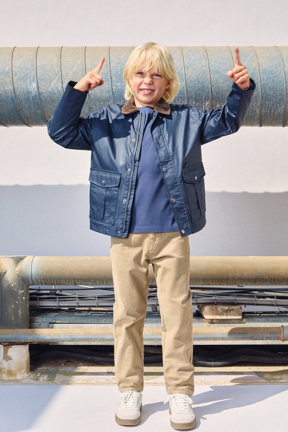 Five-pocket trousers made of slightly stretch BCI cotton. Regular fit. Button and zip fastening. Belt loops at the waist.