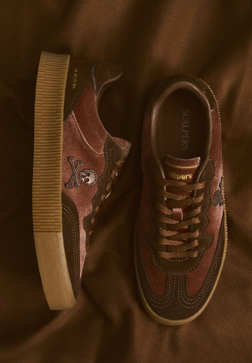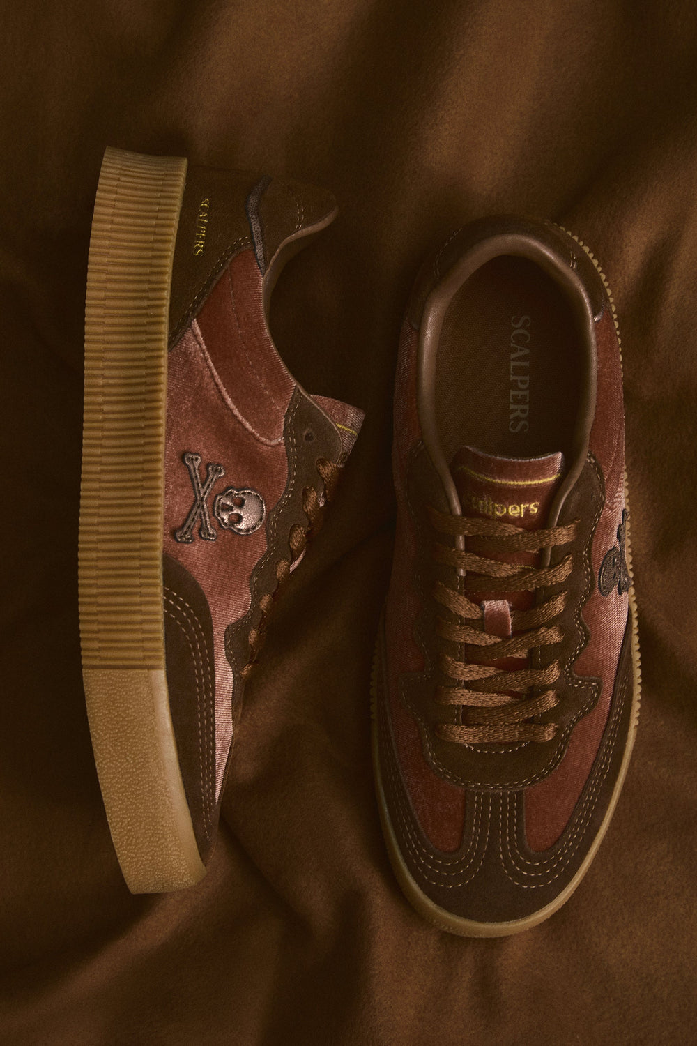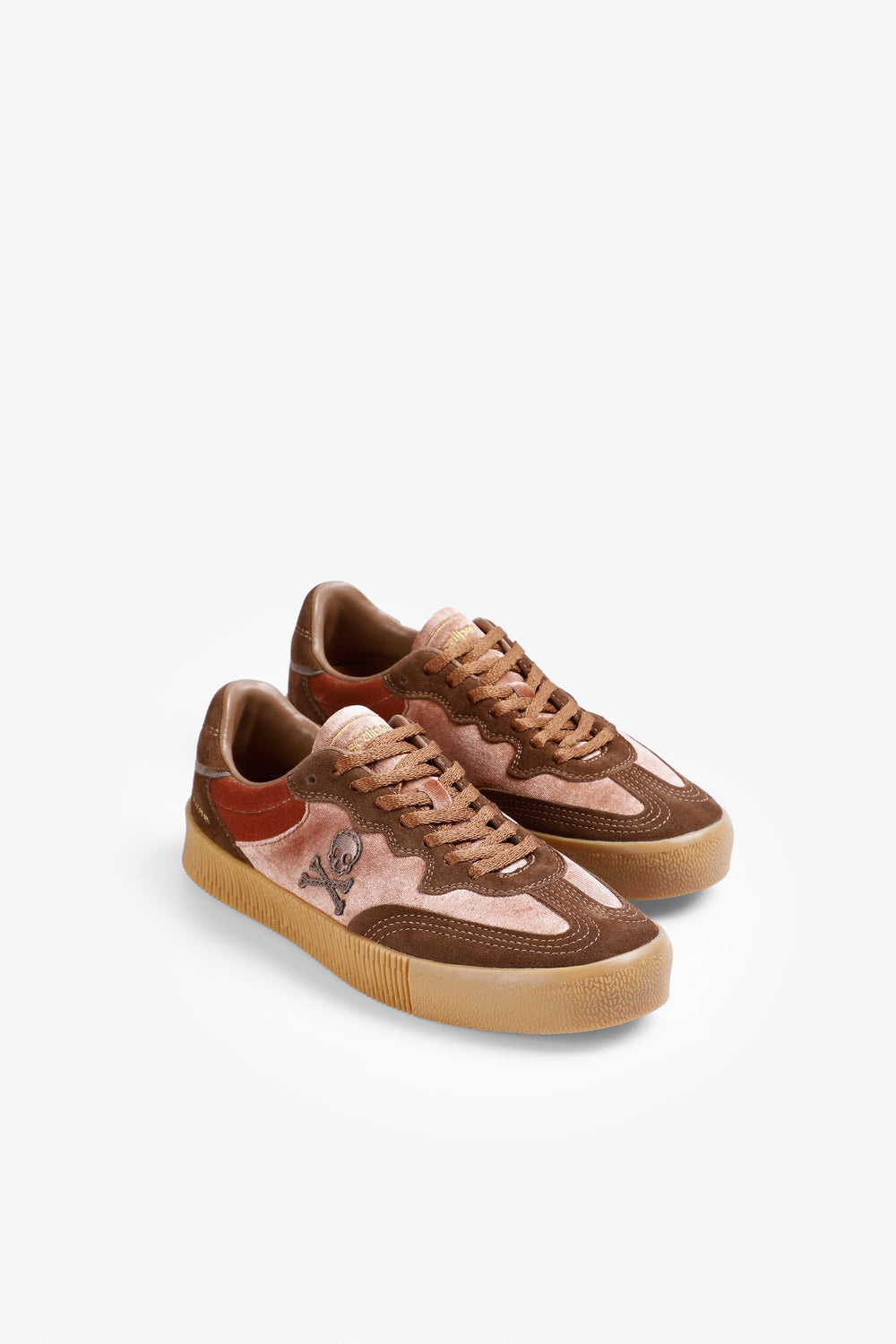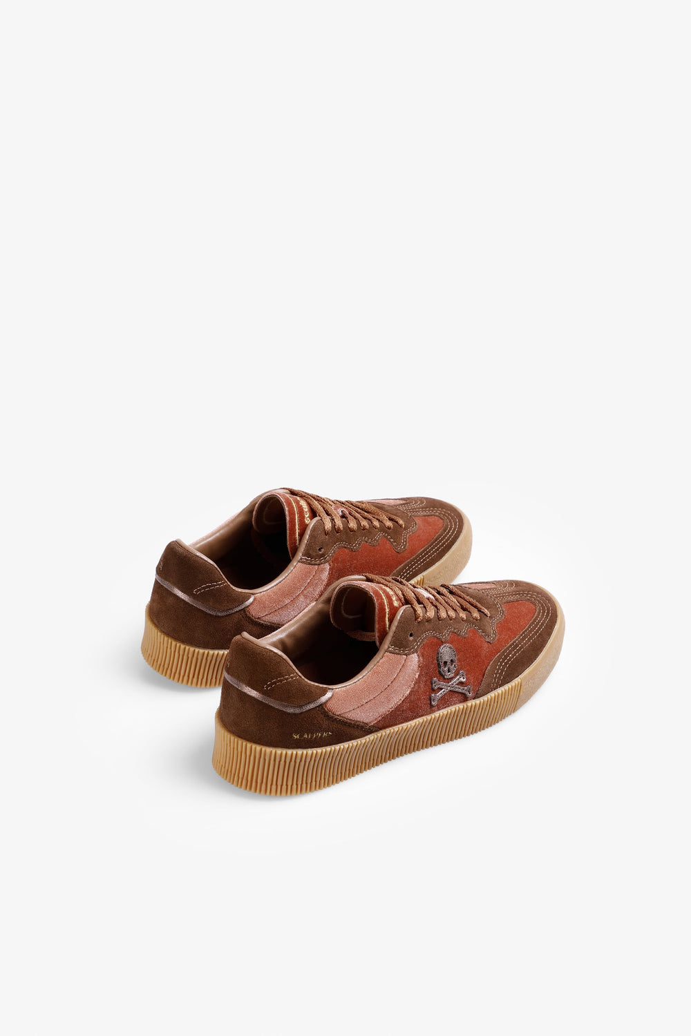 Suede sneakers. Contrast embroidered side logo detail and skull. Contrast TPR sole. Contrast lace-up fastening